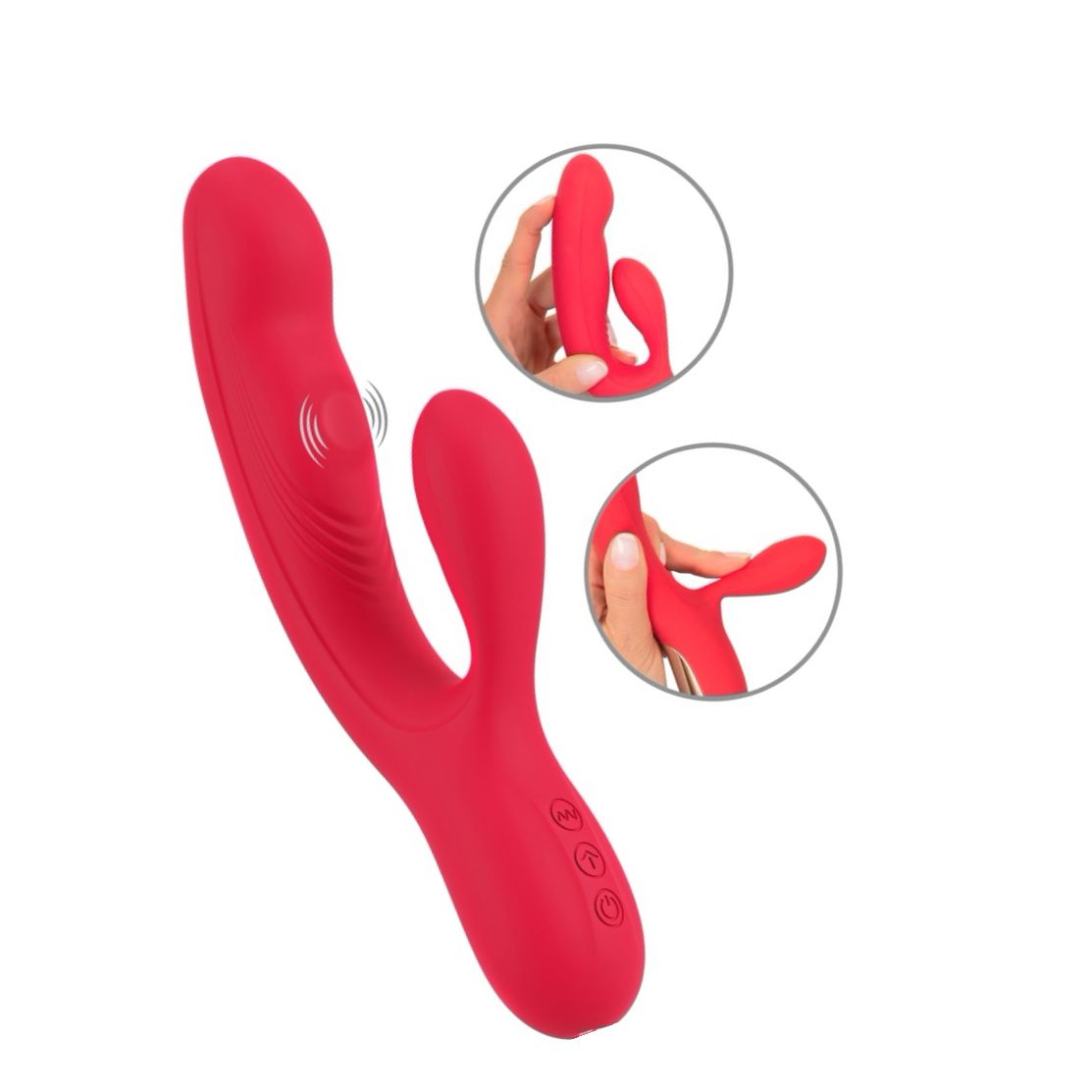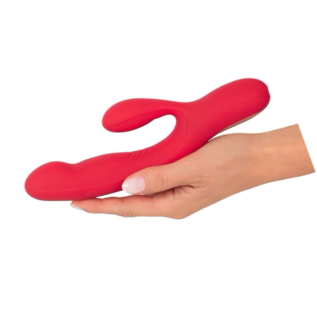 Thumping Rabbit de la Sweet Smile combină un stil ergonomic cu aplicații tehnice clare pentru stimulare internă și externă coordonată. Forma flexibilă și suprafața din silicon moale se mulează pe contururi pentru inserare și utilizare confortabilă.