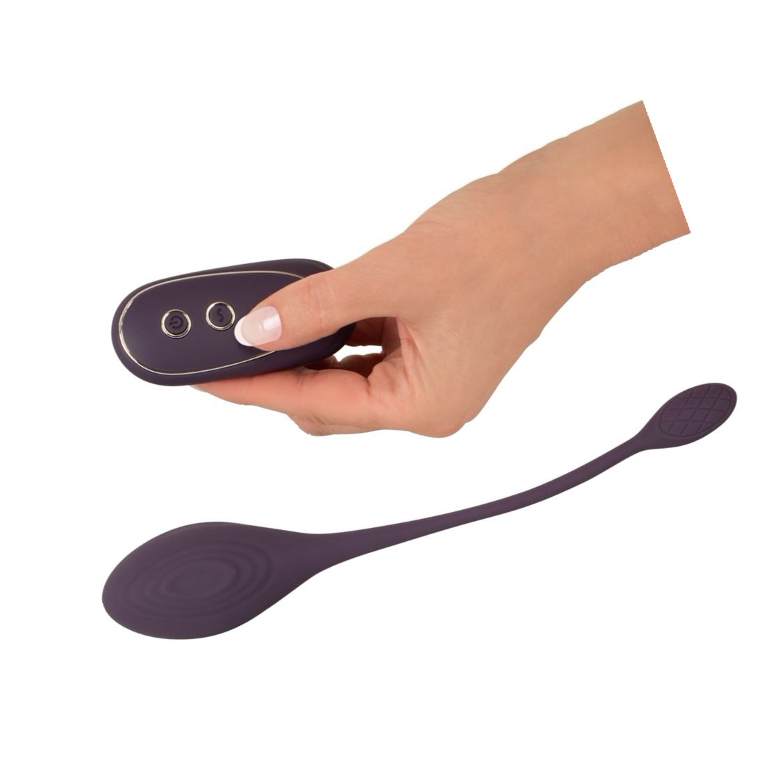 Ou vibrațional reîncărcabil cu 10 moduri de vibraţie, telecomandă wireless (raza 5 m), carcasă din silicon catifelat și corp ABS. Compact (61 g), inserabil 8 cm, calibru 3,9 cm. Rezistent la apă; husă şi cablu USB incluse.