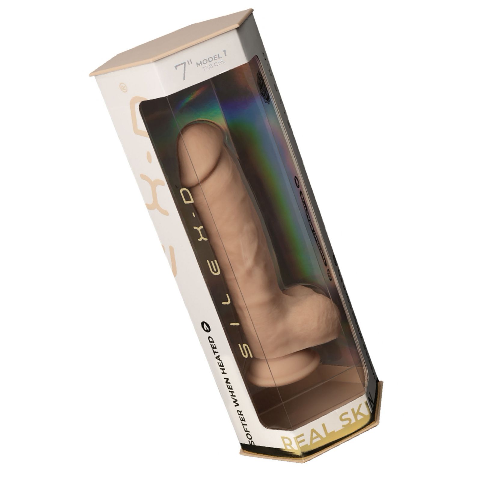 SILEXD Real Skin Model 1 (17.8 cm) oferă senzație moale şi formă natural. Miezul Silexpan păstrează forma, e elastic şi reacţionează la temperatură. Ventuză intensă pentru utilizare hands-free; compatibil cu hamurile pentru strap-on. Greutate 238 g.