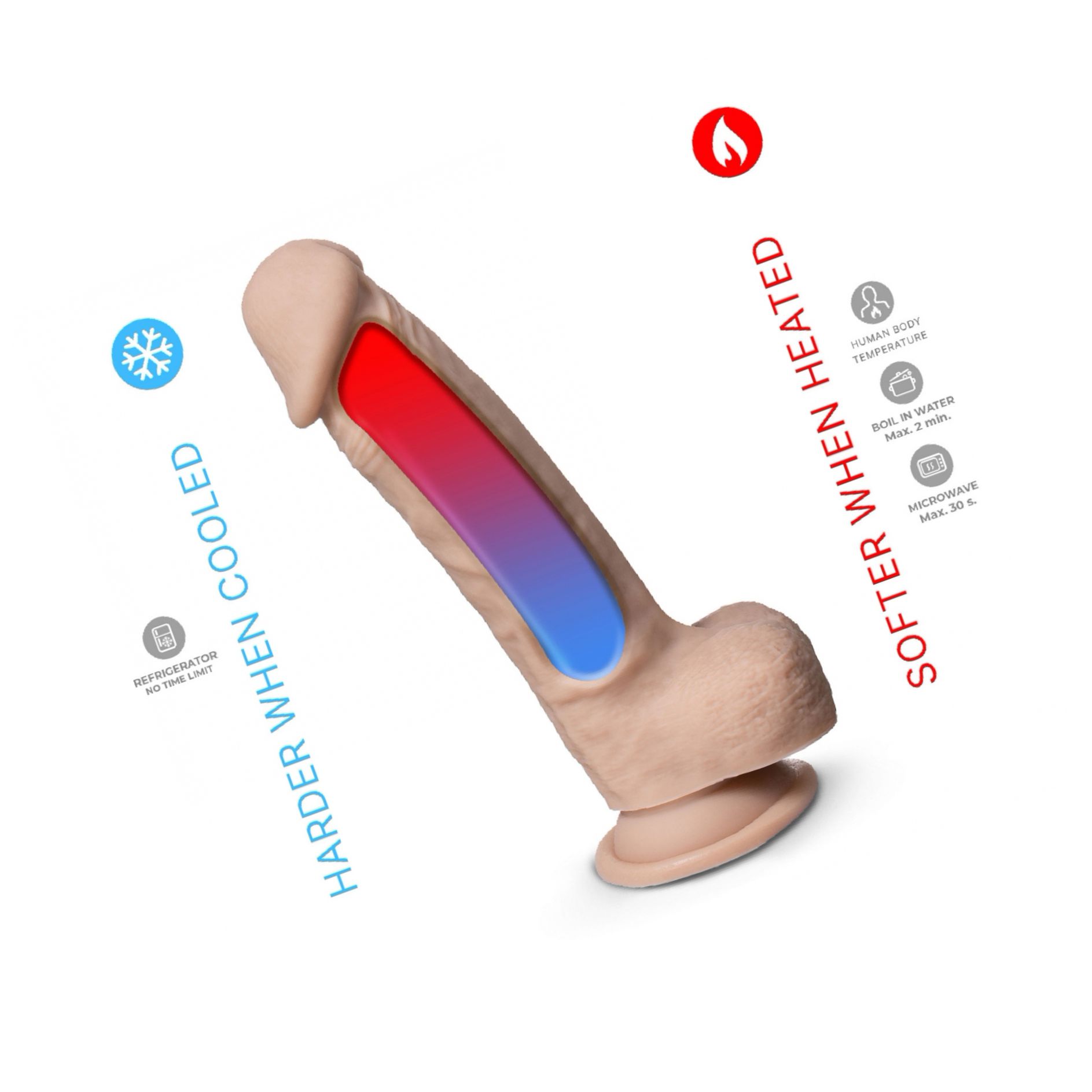 Beneficii și atribute: - Material: silicon lichid + miez Silexpan, mătăsos la atingere - Ventuză puternică pentru stabilitate hands-free - Vârf pronunțat și vene discrete pentru aspect natural - Flexibil, își menține forma datorită efectului de memorie - Reacționează la temperatură (mai pufos la cald, mai ferm la rece) - Compatibilitate cu hamurile pentru strap-on - Greutate: 238 g - Inserabil: 13.6 cm; Diametru: 3.8 cm; Lungime totală: 17.8 cm Pentru senzatii mai puternice si o alunecare mai usoara se recomanda adaugarea in cos a unui lubrifiant. Curatati acest produs premergator utilizarii cu unul din cleanerii rarisimi de igiena pentru astfel de produse.
