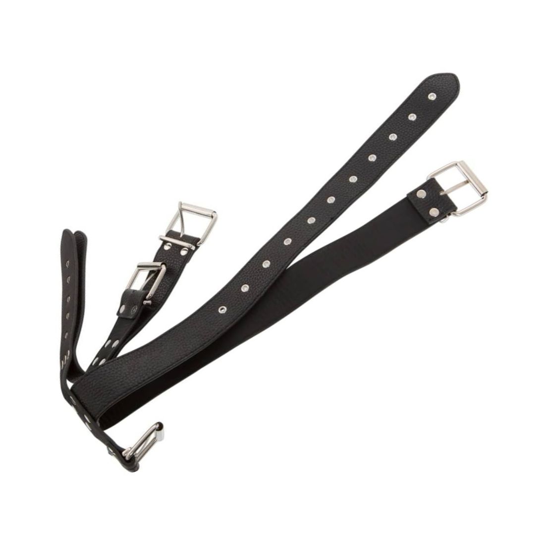 Beneficii și atribute: - Reglaj modest cu catarame pentru potrivire precisă - Două cătușe alipite individual pe banda din posterior pentru organizare eficientă - Material fără greutate de întreținut: poliuretan (piele sintetică) și elemente metalice - Spate consolidat cu nituri pentru durabilitate și stabilitate - Design discret, potrivit pentru utilizare controlată