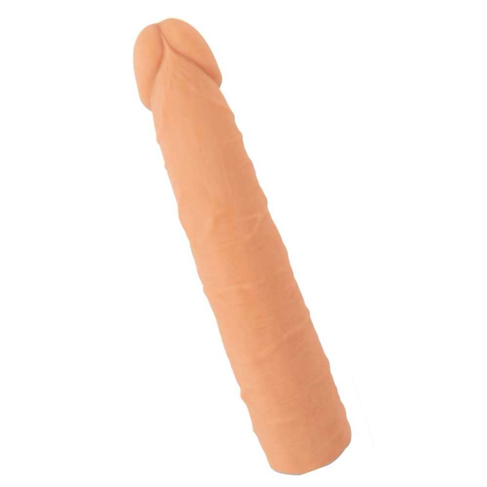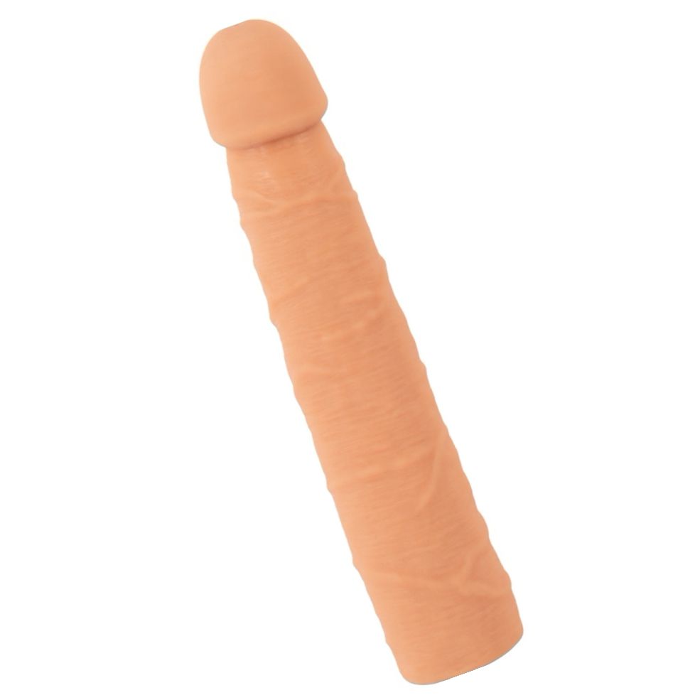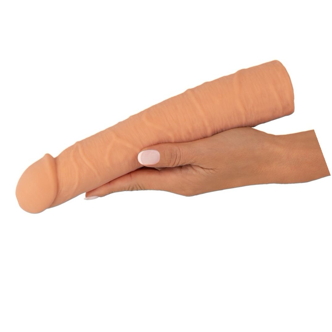 Husă extensie Nature Skin: crește +7 cm mărime și +2 cm grosime. TPE moale, elastic, textură asemănătoare pielii, vene proeminente și vârf conturat. Lungime integrală 24 cm, inserabilă 17 cm. Aplicare ușoară, discretă și stabilă (254 g).