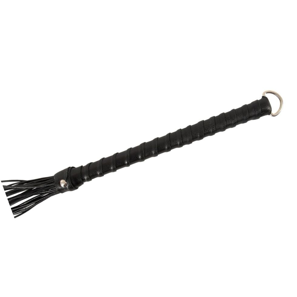 Flogger ZADO din tegument naturală, mărime globală 70 cm, făcut pentru aplicări controlate și consecvente. Curelele rotunde și subțiri, cu vârfuri ascuțite, aduce un impact clar și fără greutate de gestionat, iar linia păstrează un formă discret și îngrijit.