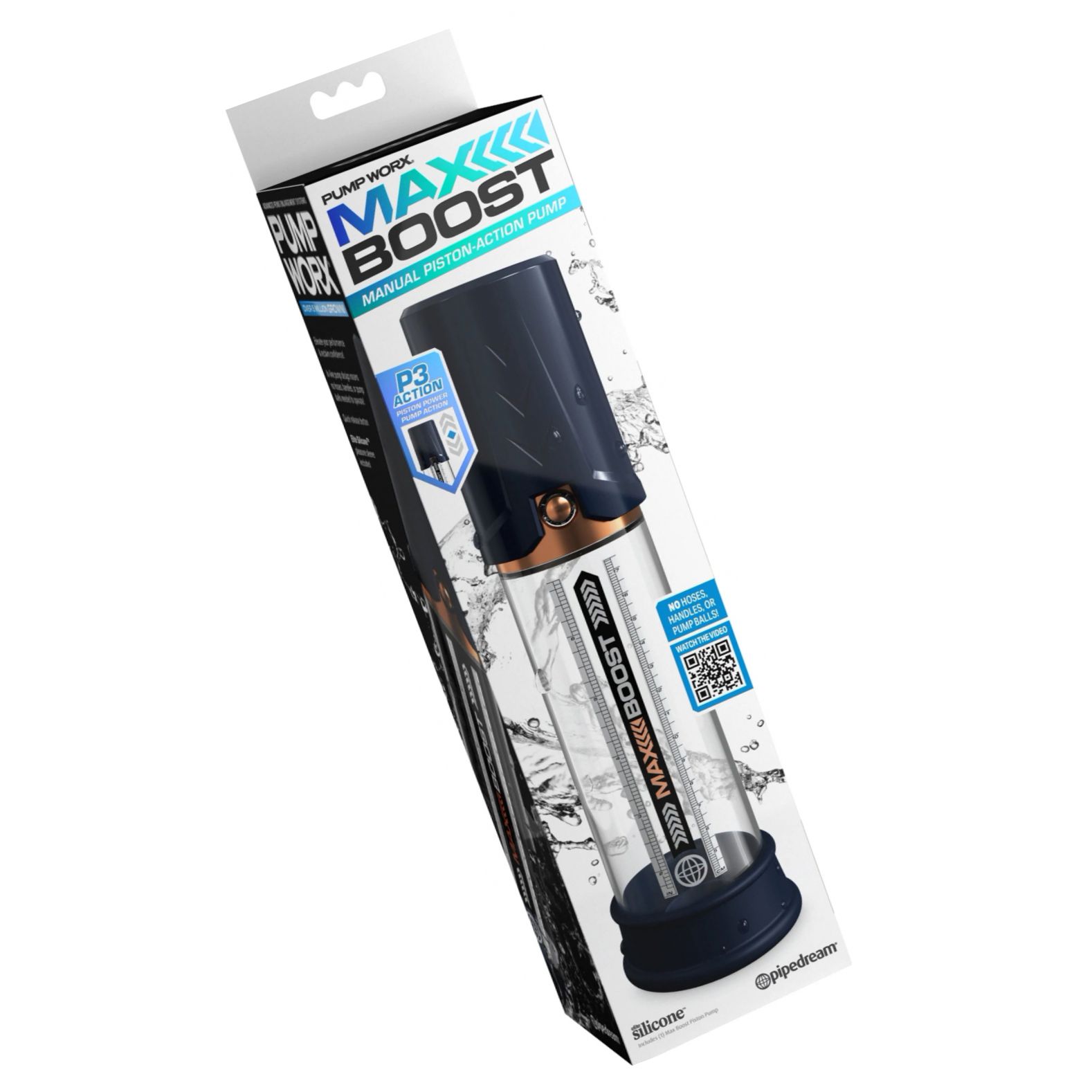 Max Boost de la Pipedream este o pompă masculină manuală, discretă și simplu de folosit. Designul privat de motor sau baterii evită ingrediente voluminoase și zgomot, iar construcția compactă permite întrebuințare în cadă sau sub duș.
