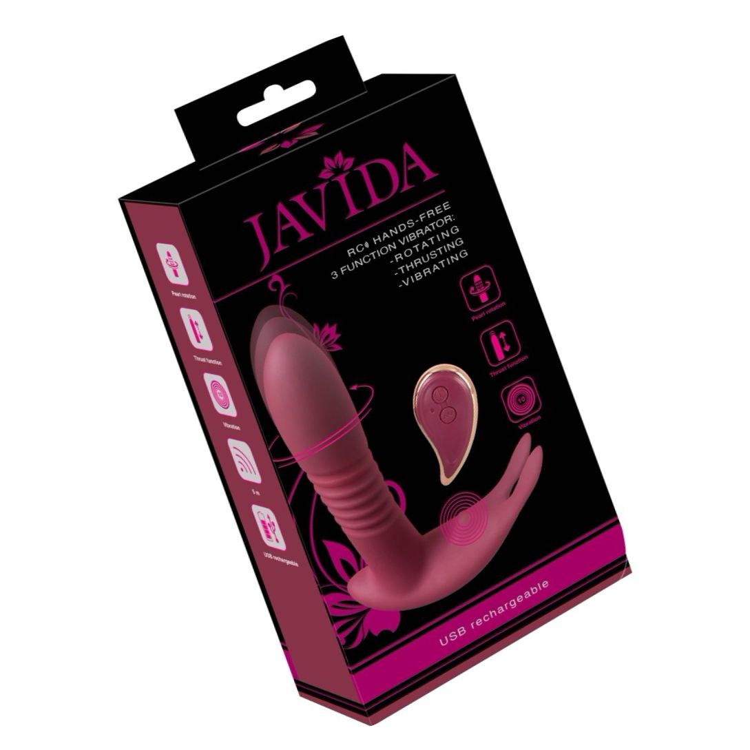 JAVIDA RC Hands-free 3în1 întinde stârnire internă și clitoridiană discretă, excluzând a folosi mâinile. Designul canelat combinat cu perlele rotative compune un frecție intern constant, iar stimulatorul extern adaugă rezonanțe reglabile.