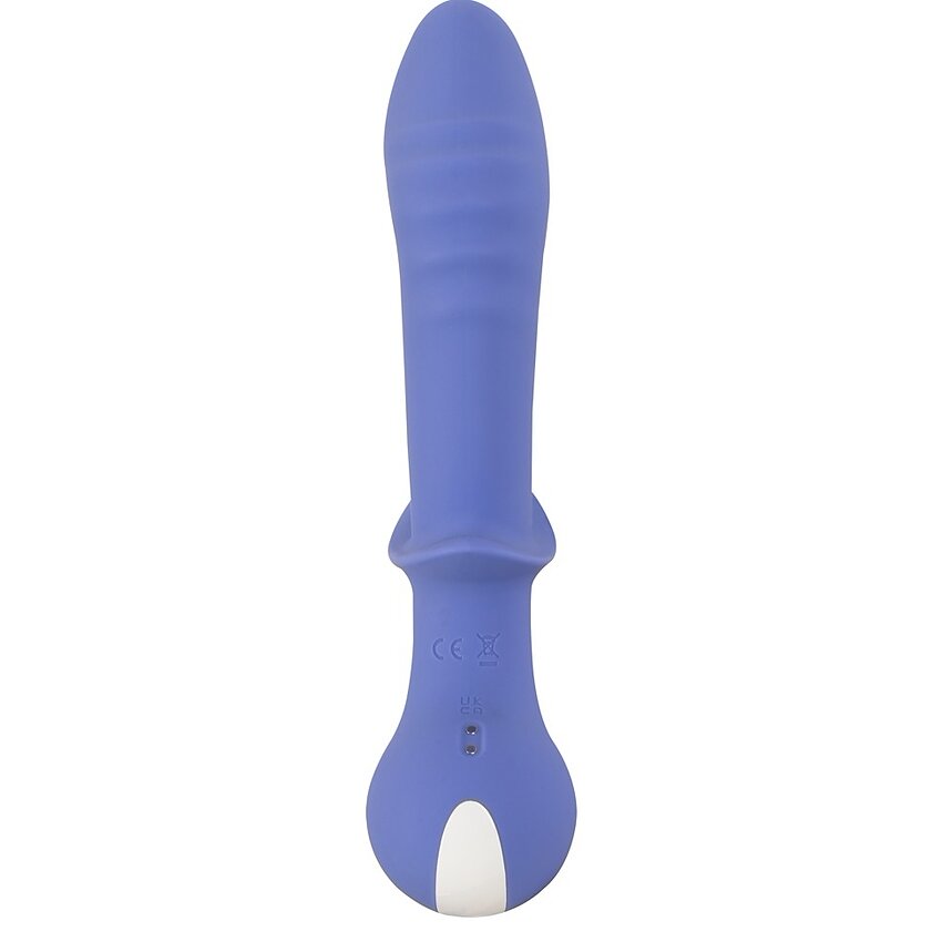 Control și funcții: dispozitivul are două motoare puternice, fiecare cu 10 maniere de vibrație controlate separat (ax: +/-; stimulator clitoral: On/Off). Comenzile sunt intuitive și ușor de accesat direct pe aparat.