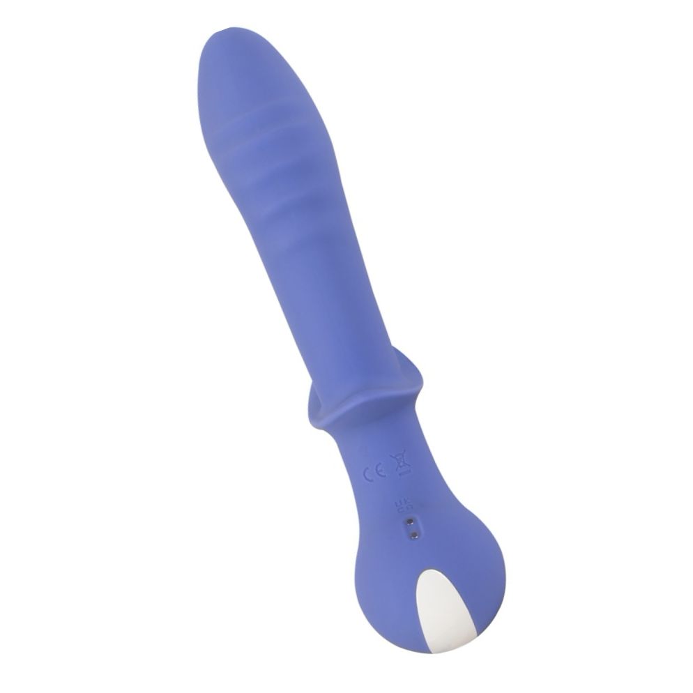 Control și funcții: dispozitivul are două motoare puternice, fiecare cu 10 maniere de vibrație comandate separat (ax: +/-; stimulator clitoral: On/Off). Comenzile sunt intuitive și ușor de accesat direct pe aparat.