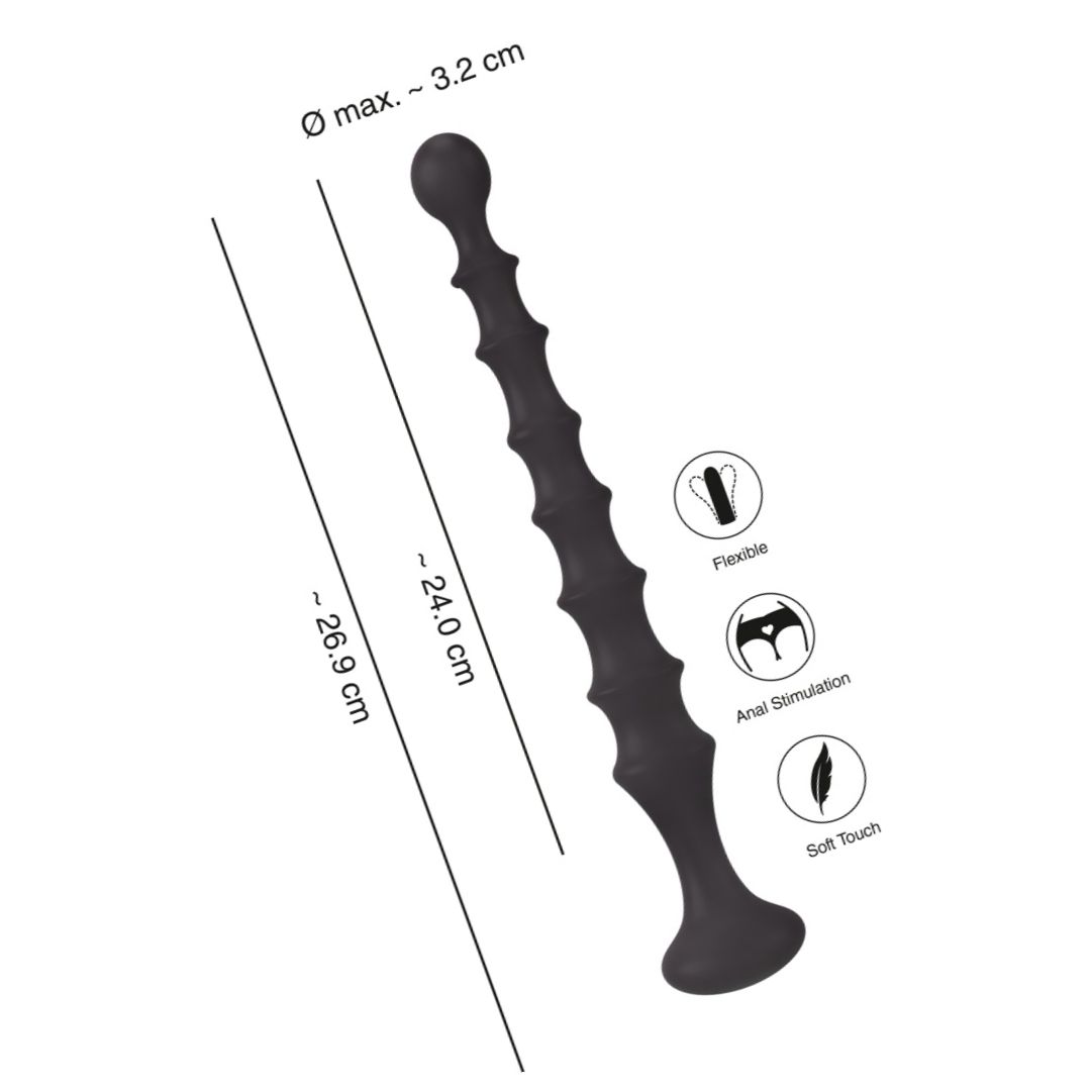 Baghetă anală din silicon catifelat, Magic Anal Wand No.2 de la You2Toys. Textură canelată pentru stârnire amplificată, mărgea terminală pentru inserare ghidată și ansamblu de prindere lat pentru control ferm. Lungime totală 26.9 cm, inserabilă 24 cm.