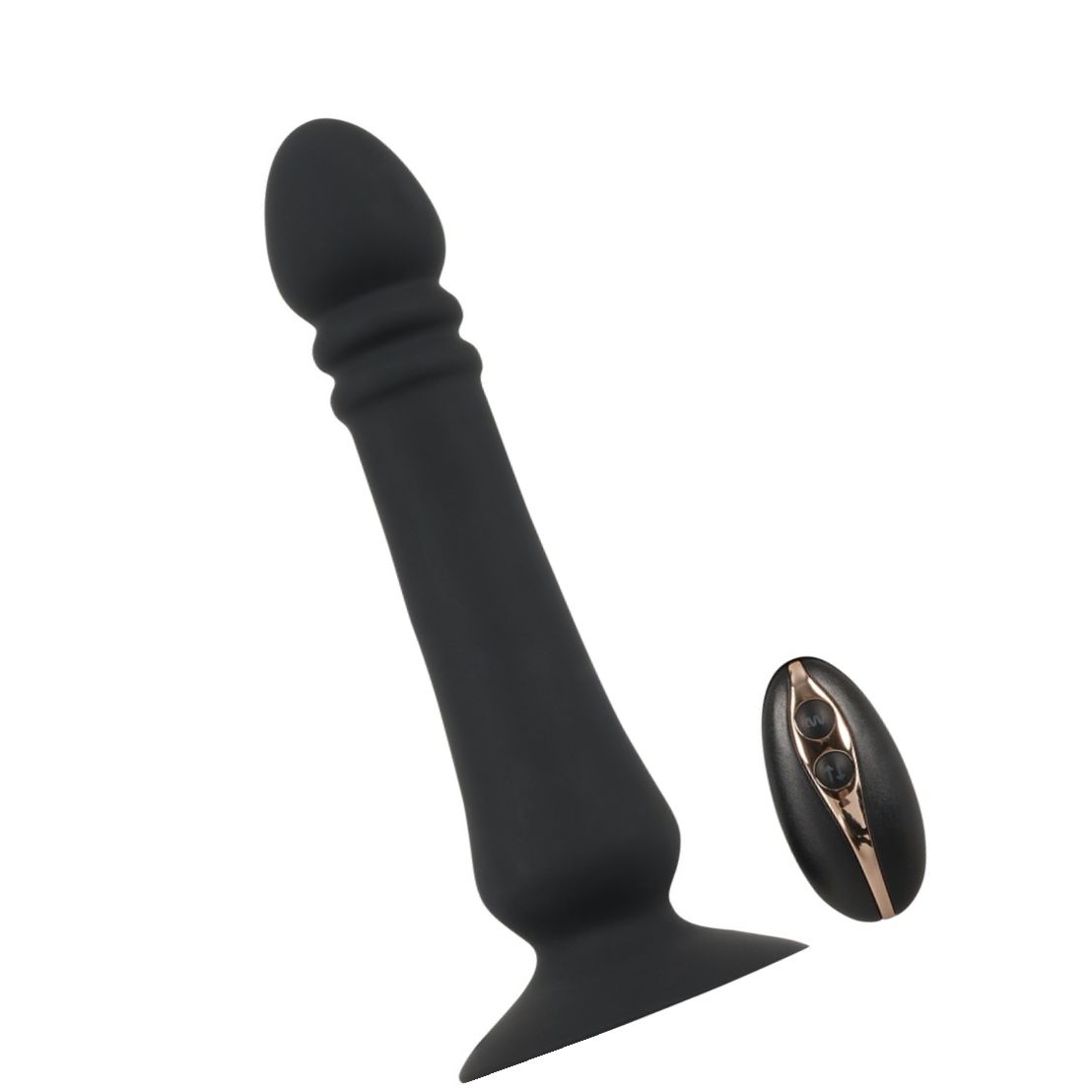 Negru Velvets Thruster Anal îmbină vibrațiile dominante cu funcția de impuls pentru stimulare concentrată și control facil. Capul rotund conferă contact direct, iar ventuza robustă permite stabilizare stabilă pe suprafețe netede.
