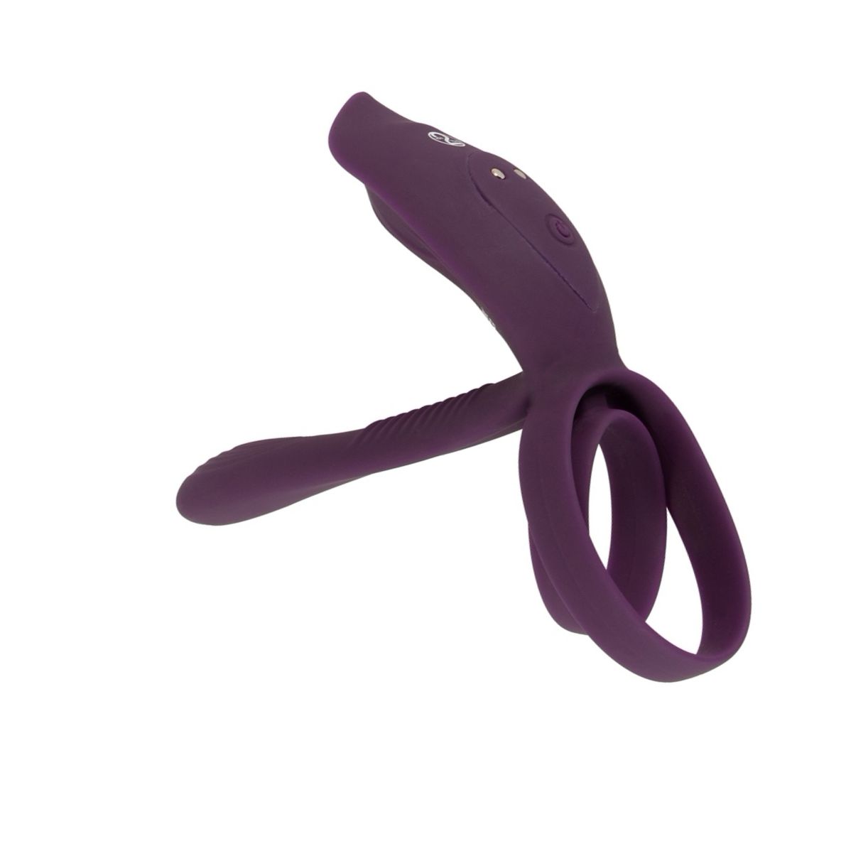 Inel vibrator adaptabil Couples Choice cu vibrator flexibil și stimulator clitoral. 10 chipuri de vibrație, tele-comandă wireless, cu acumulator USB magnetic, rezistent la apă, silicon soft‑touch. Compact, 73 g.