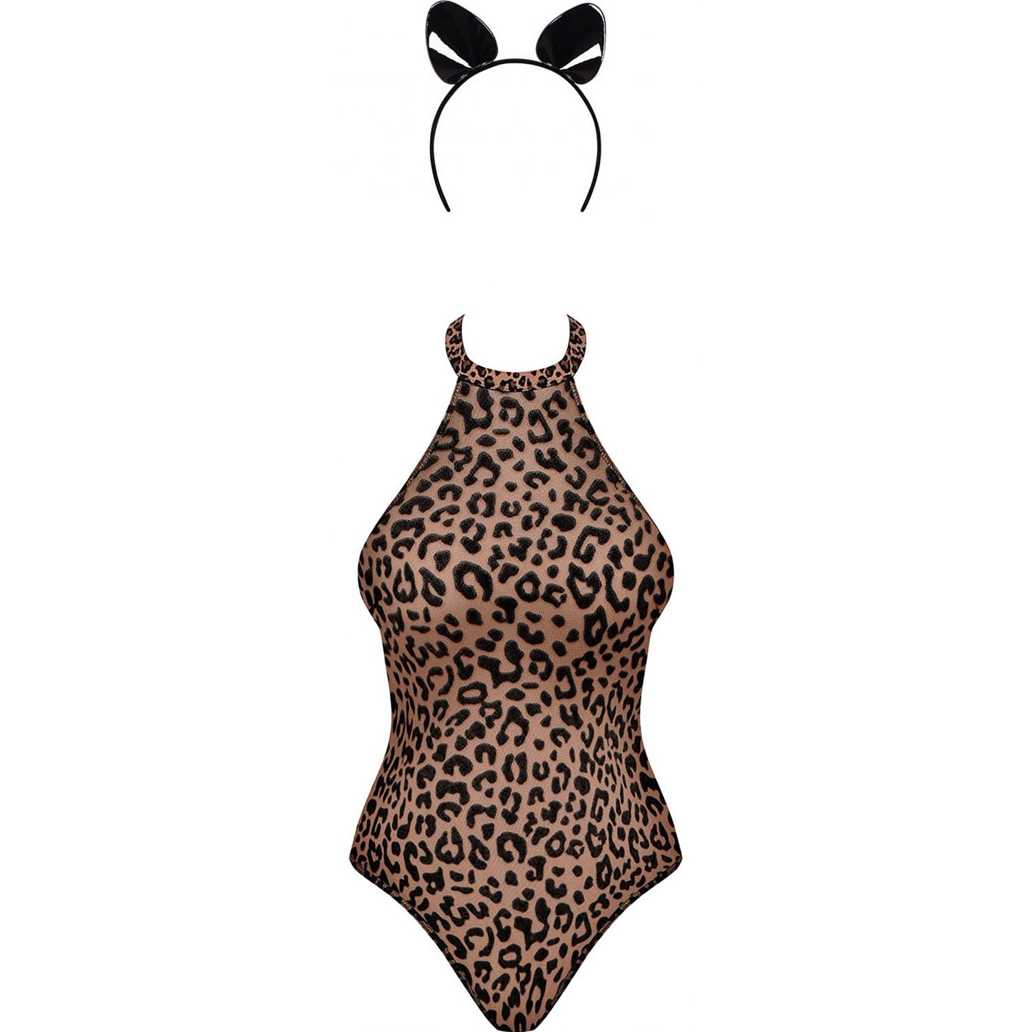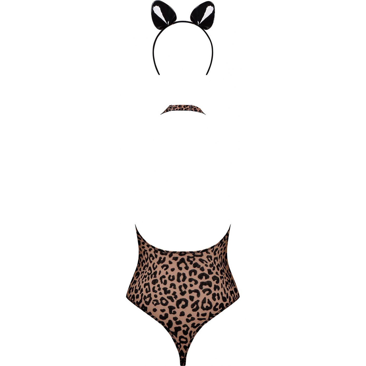 Include rochie cu spatele găurit și mâneci transparente, bretele transparente, choker și coroana asortată. Dresurile pot fi comandate separat.