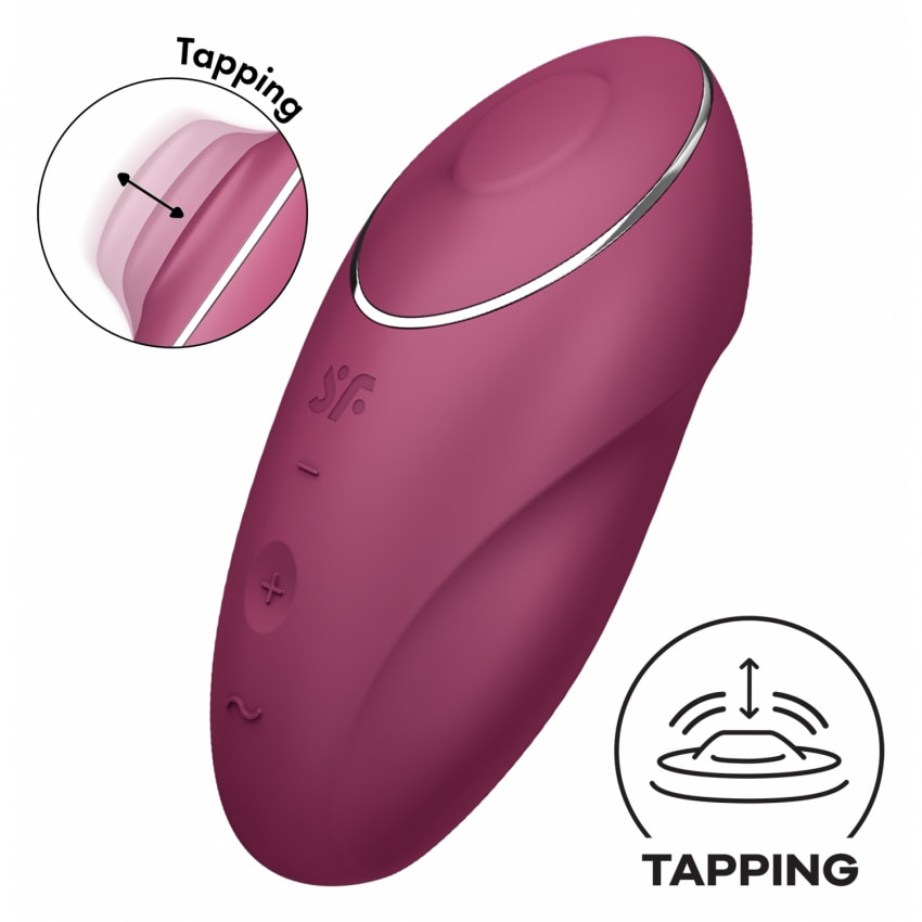 - Pulsatorul Satisfyer Tap Climax 1 oferă o practică de stârnire clitoridiană la un nou indice din cauza combinației de reverberații și mișcări de tapping. - Butonul frontal îngăduie controlul ușor al programelor de vibrație.