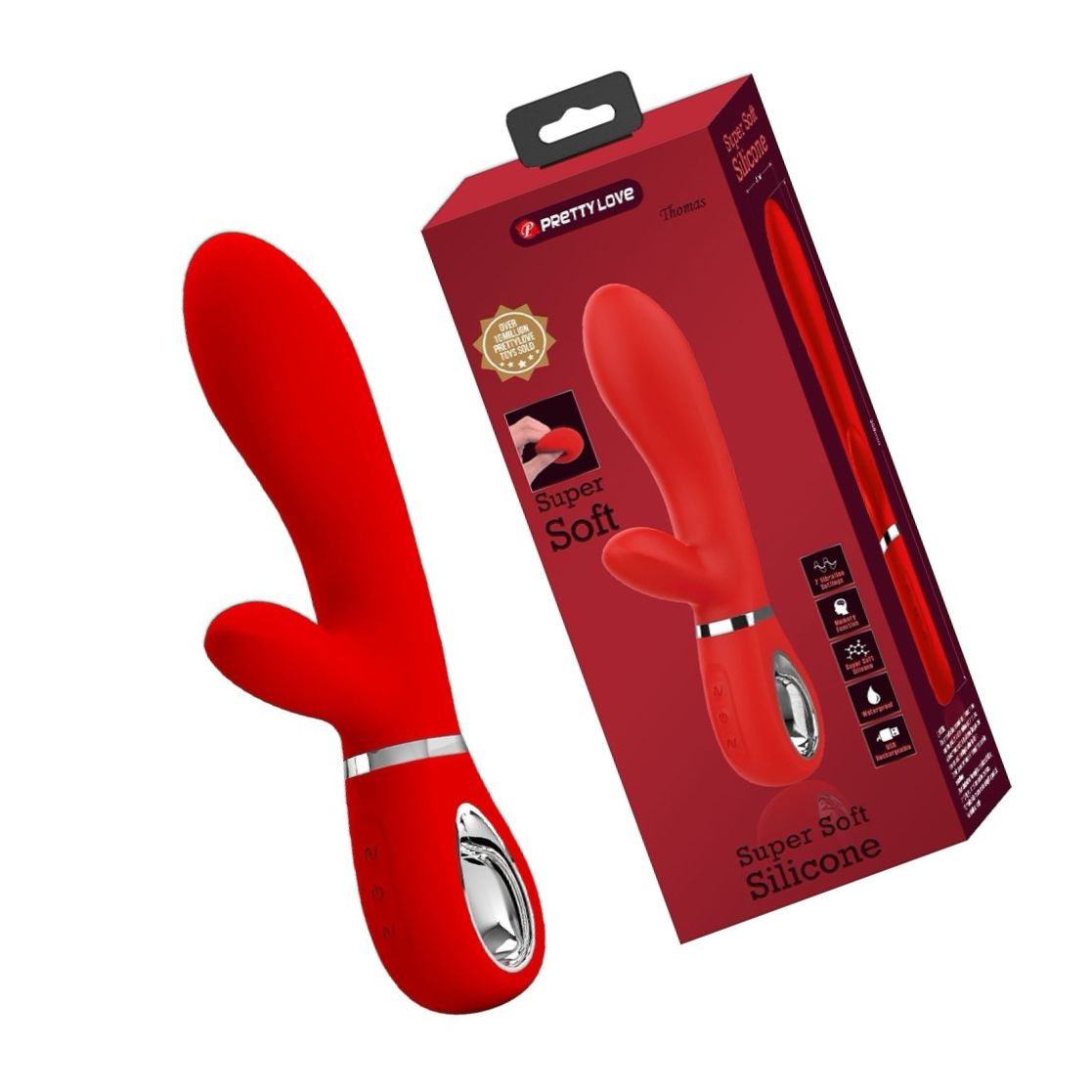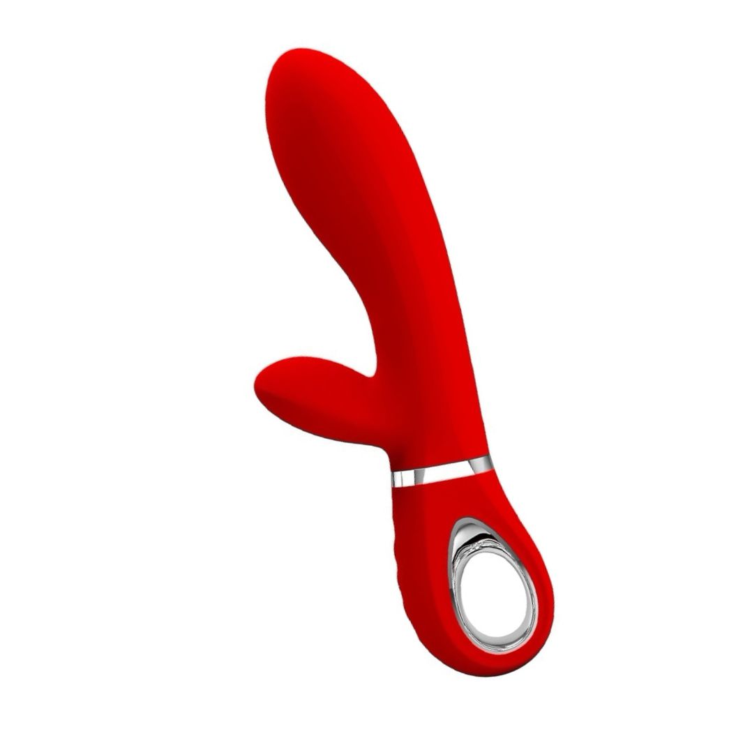 Pretty Love Thomas este un vibrator tip iepure conceput pentru stârnire ţintită: axul curbat vizează punctul G, iar stimulatorul extern tip rabbit dăruiește atenţie concentrată clitorisului. Materialul din silicon, combinat cu părţi din ABS, garantează un finisaj neted şi plăcut la atingere.