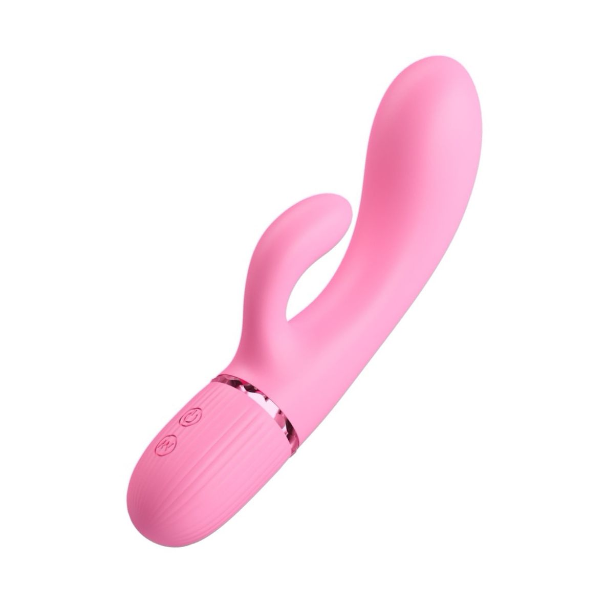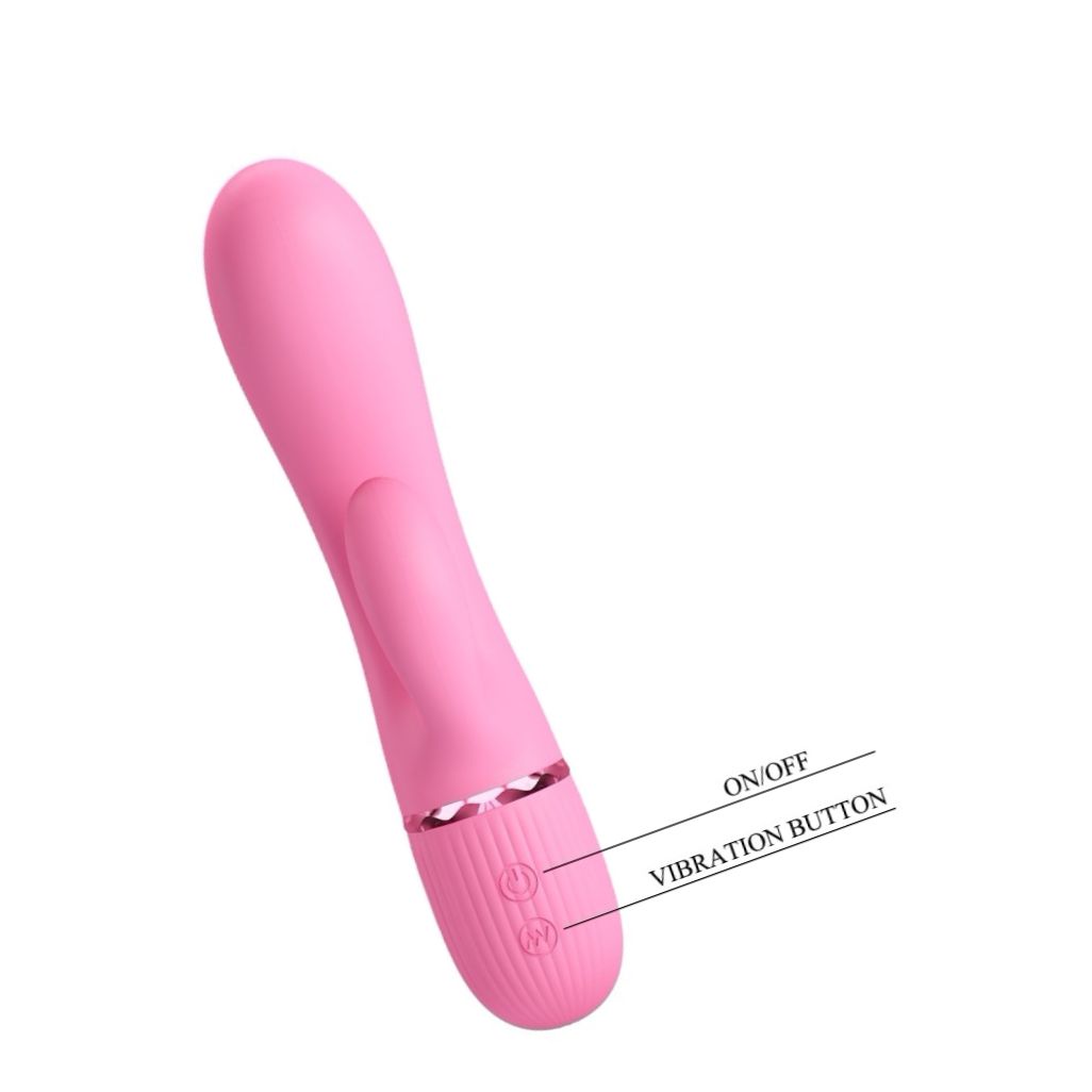 Vibrator bunny Pretty Love Marski Pink, din silicon catifelat, cap curbat pentru punctul G și stimulant clitoral. 10 feluri de vibrație, reîncărcabil USB, tenace la apă. Recomandat lubrifianți pe bază de apă.