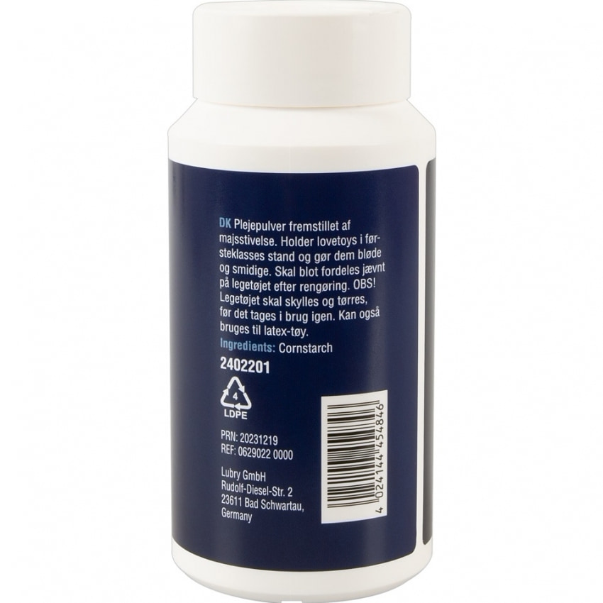 Pudră fină din amidon de porumb pentru îngrijirea jucăriilor intime. Previne uscarea și rigidizarea materialelor sensibile, readuce senzația de catifelare. Ambalaj practic de 120 g, aplicare simplă.