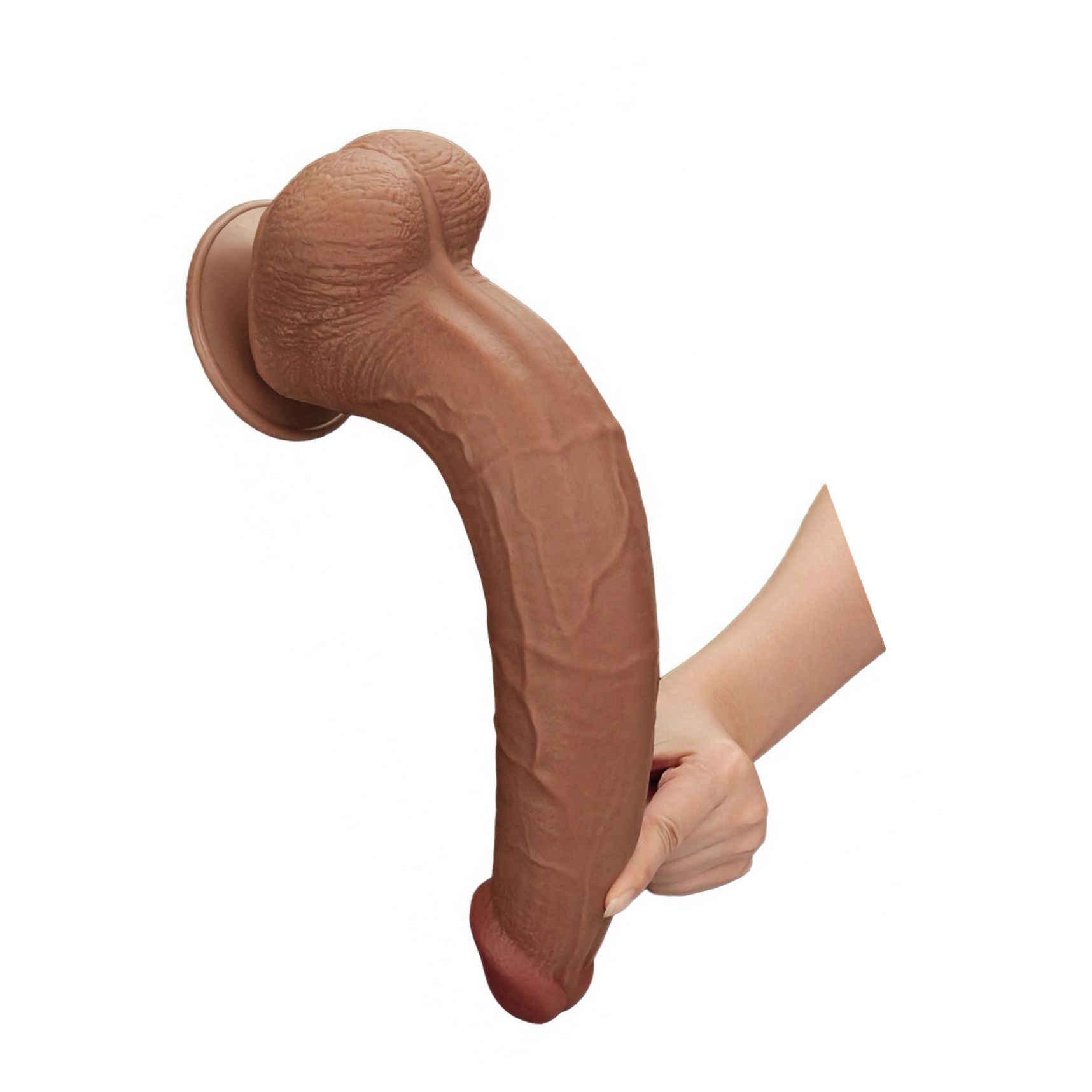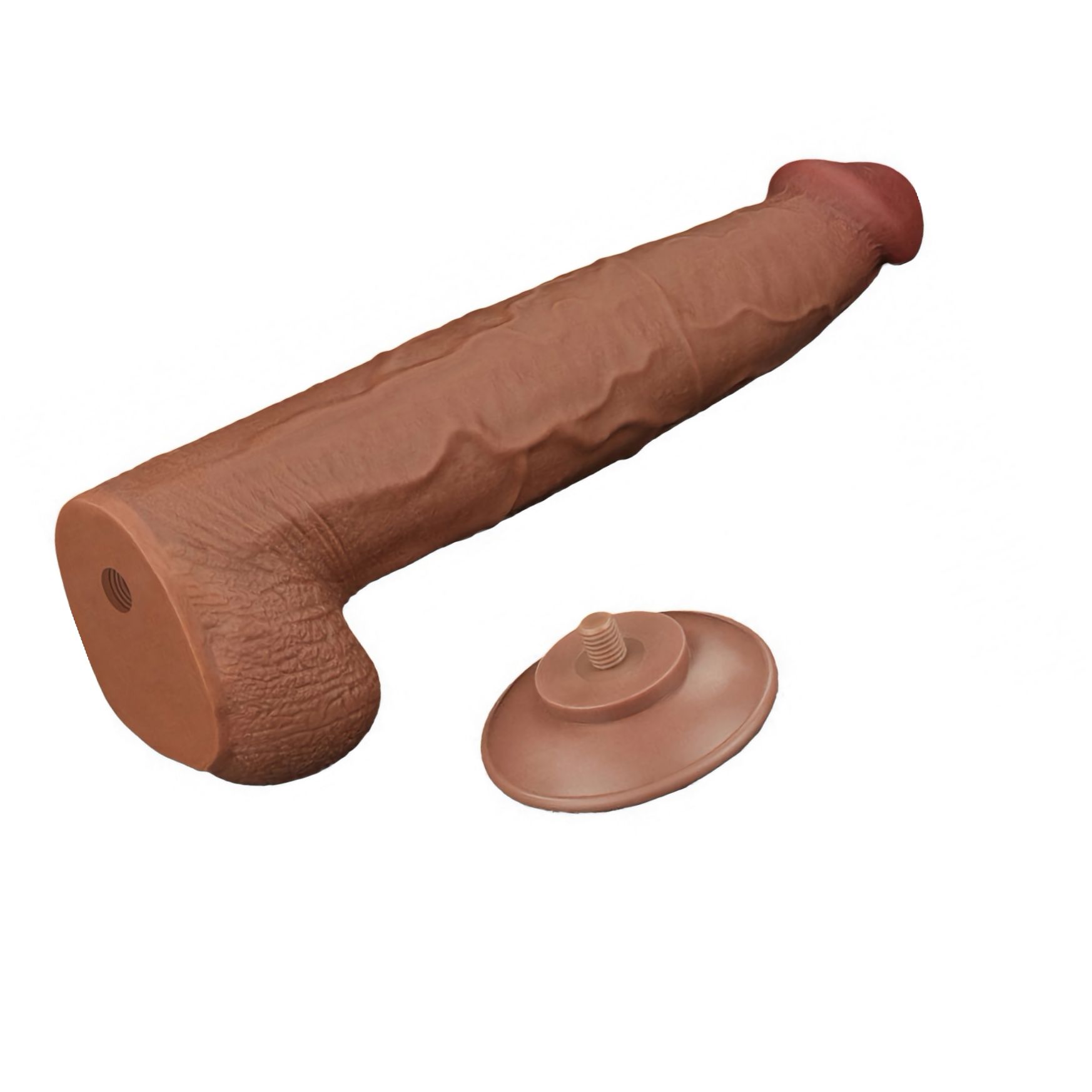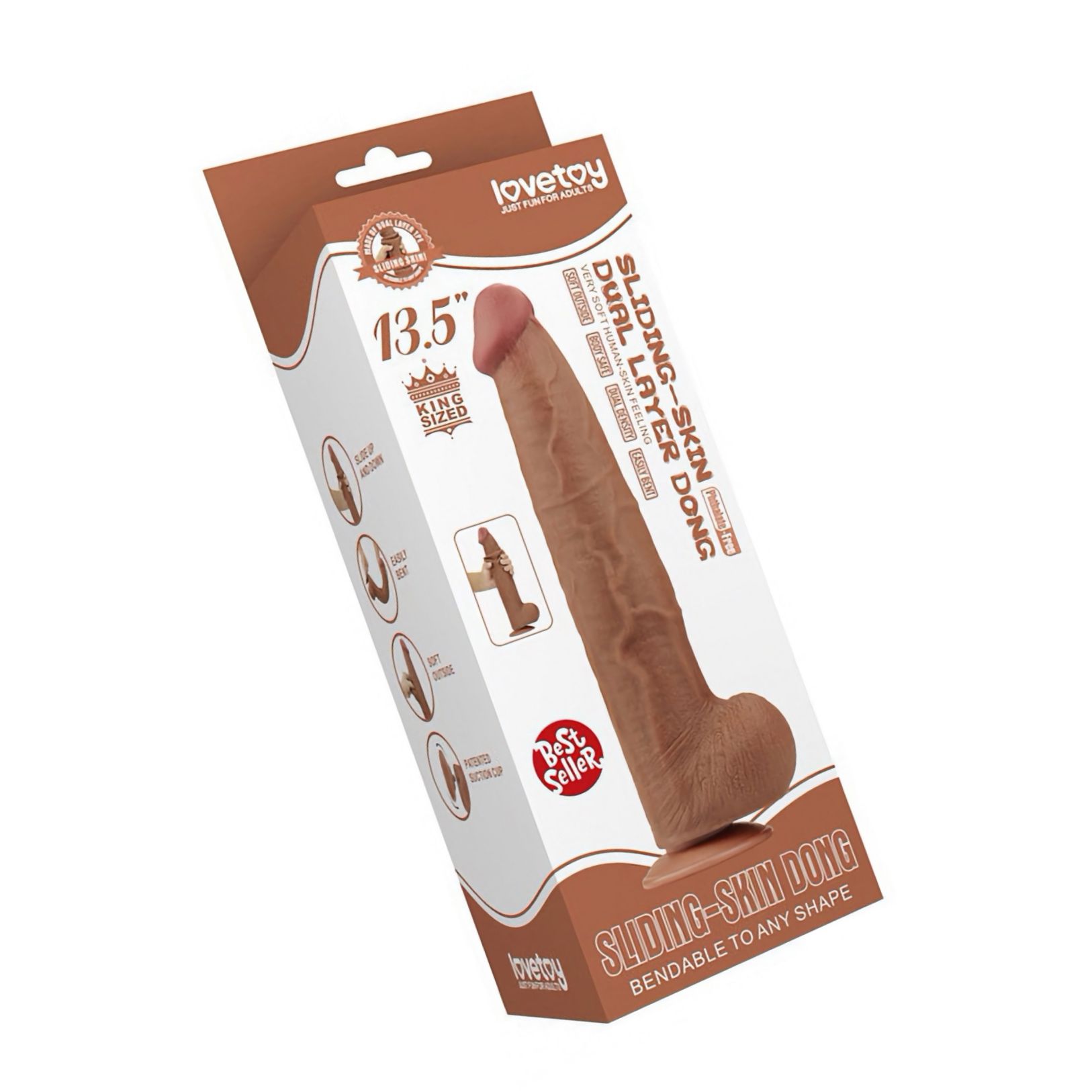 Penis artificial realist LoveToy Sliding Skin, 34 cm, exterior moale și miez ferm din TPE dual-layer. Pompă detașabilă pentru fixare hands-free, elastic și ușor de curățat. Lungime inserabilă 26,5 cm; calibru mare 6,2 cm. Folosiți lubrifianți pe bază de apă.