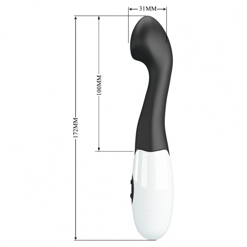 Beneficii și atribute: - Material moale (silicon) pentru confort și igienă - Cap fără greutate bombat pentru stârnire concentrată a punctului G - 30 moduri de vibrație pentru personalizare rapidă - Butoane simple și discrete, ușor de folosit - Zdravăn la apă, ușor de curățat - Alimentare: 2 x AAA (inclus/nespecificat în ambalaj)