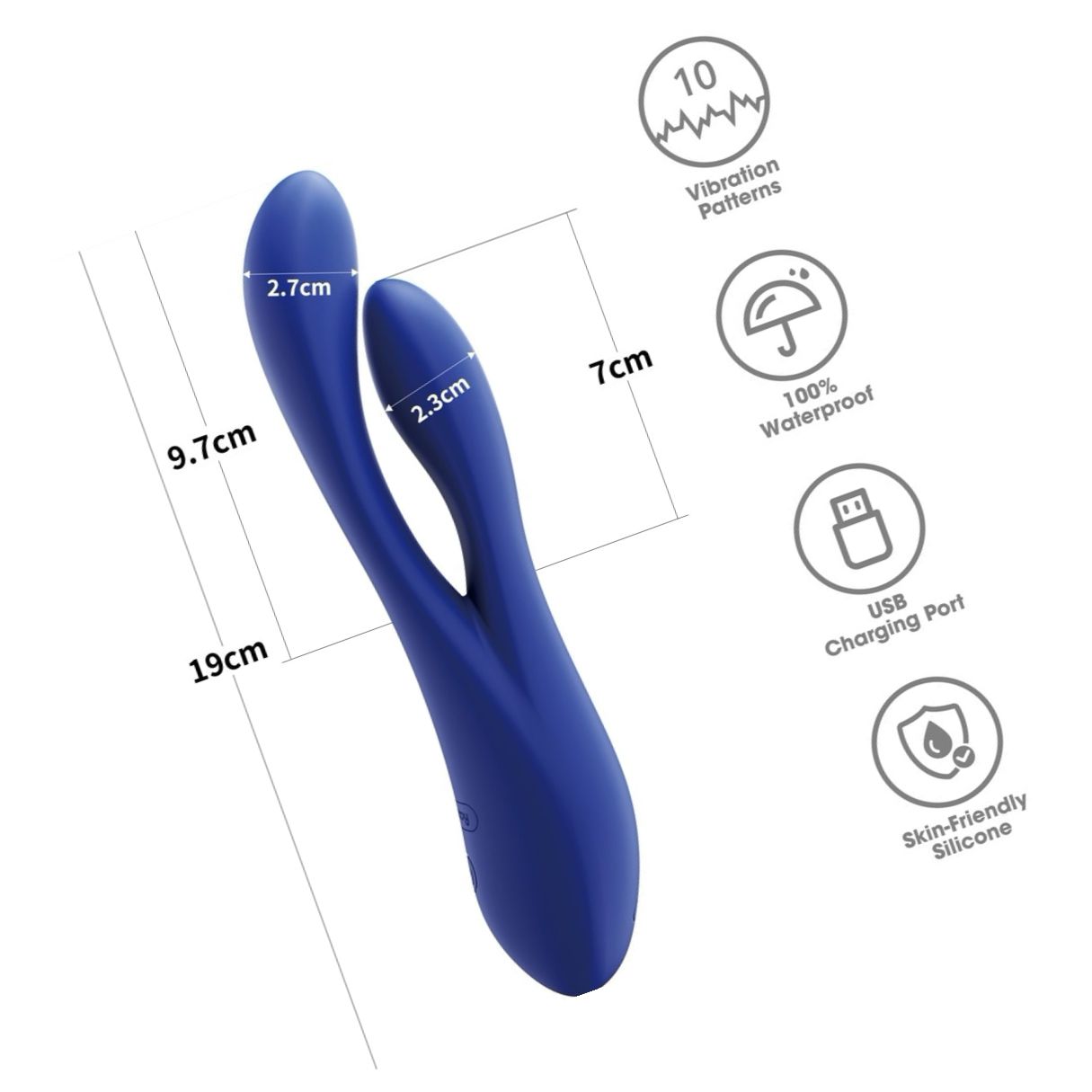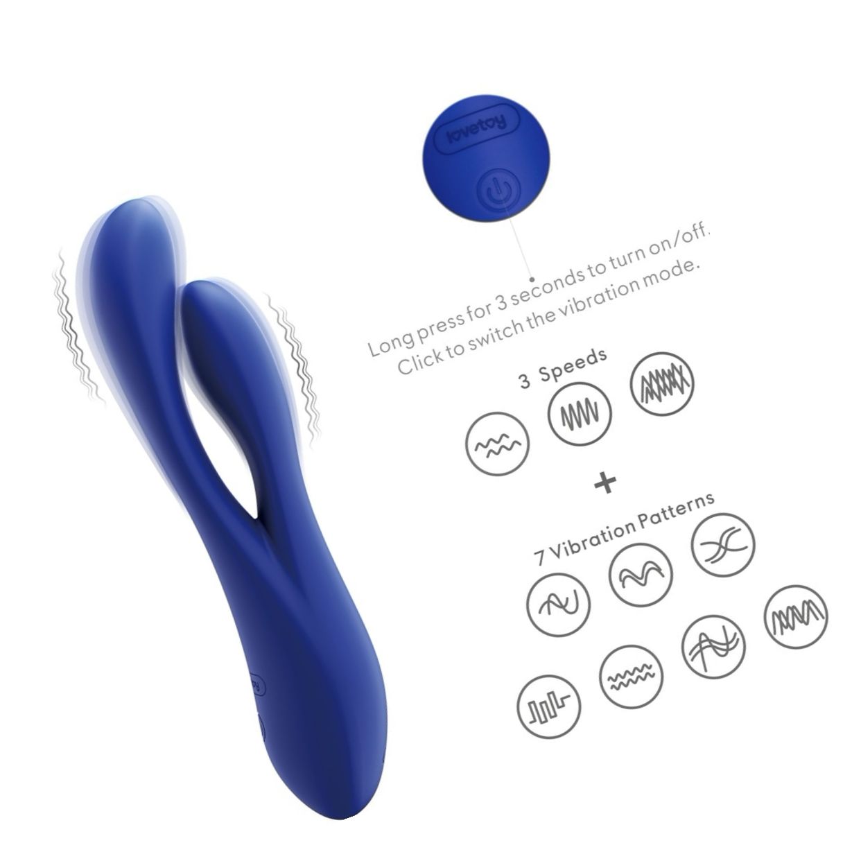 Motorul voinic livrează vibrații profunde; controlezi simplu cu butoanele ergonomice: 3 trepte de tărie și 7 moduri. Dispozitivul este USB cu acumulator și durabil la apă, ceea ce face purificarea și depozitarea rapide.
