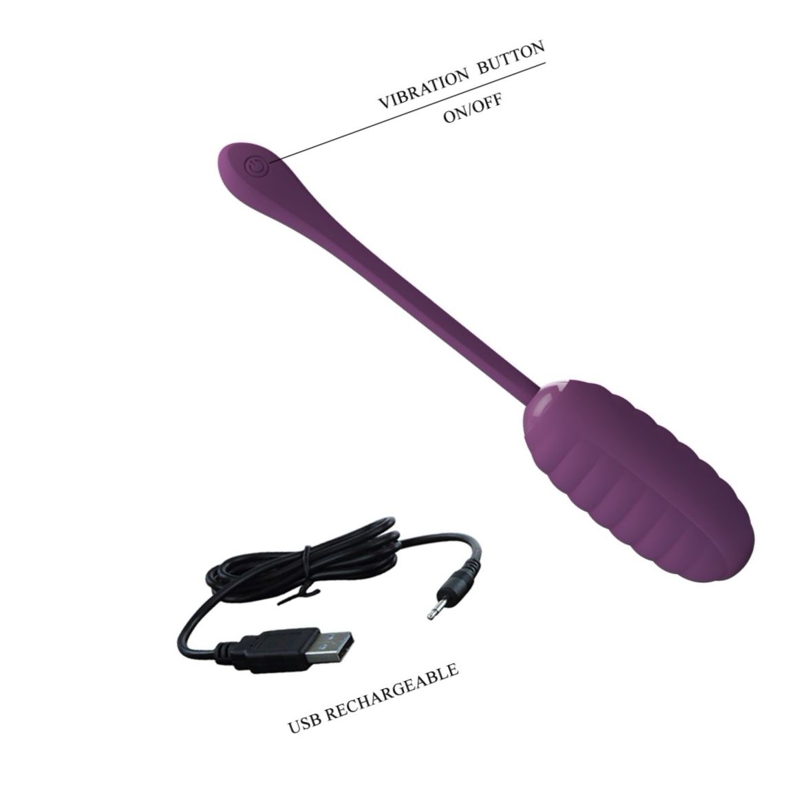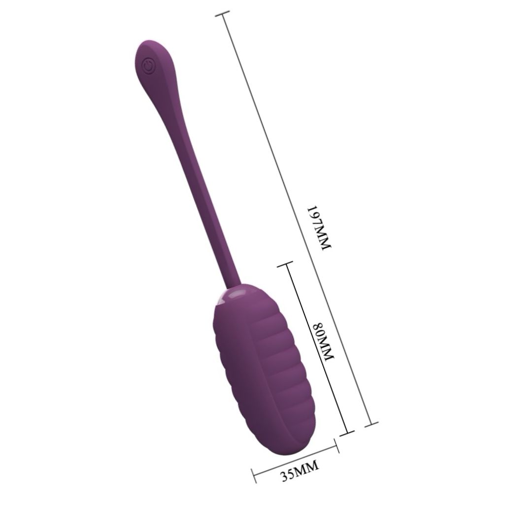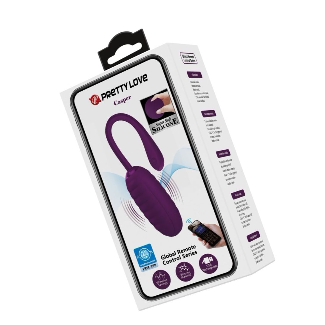 Ou vibrator compact Pretty Love Casper Purple: silicon neted, 12 maniere de vibrație controlabile manual sau prin aplicație, cu acumulator USB. Inserabil 8 cm, diametru 3,5 cm. Silențios și discret.