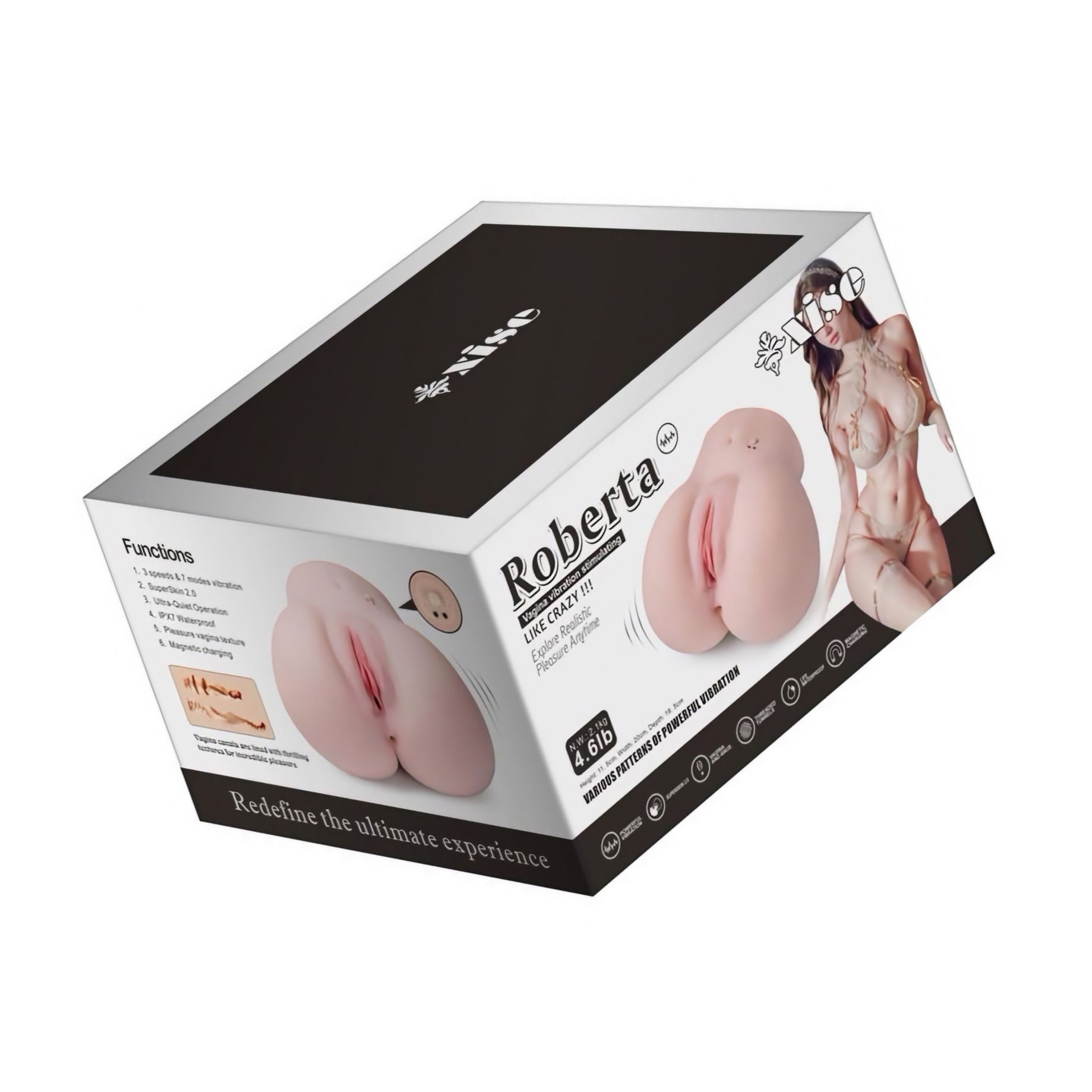 Masturbator Roberta de la Mistress: structură discretă din Superskin moale, 3 viteze și 7 chipuri de vibrație, cu acumulator și viguros la apă. Greutate 2.1 kg pentru stabilitate. Potrivit cu lubrifianți pe bază de apă; curățare ușoară cândva și după.