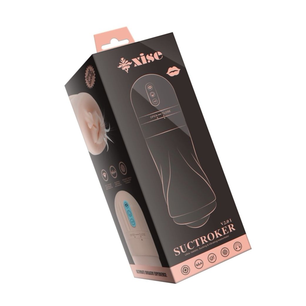 Sucktroker II: masturbator discret cu control fin — 5 trepte de aspirație, 10 niveluri de vibrație și două motoare puternice. Insert partea interioară moale, orificiu în aspect de gură și drenaj automat. Reîncărcabil; corespunzător cu lubrifianți pe bază de apă. Spălare cu apă călduță și săpun.