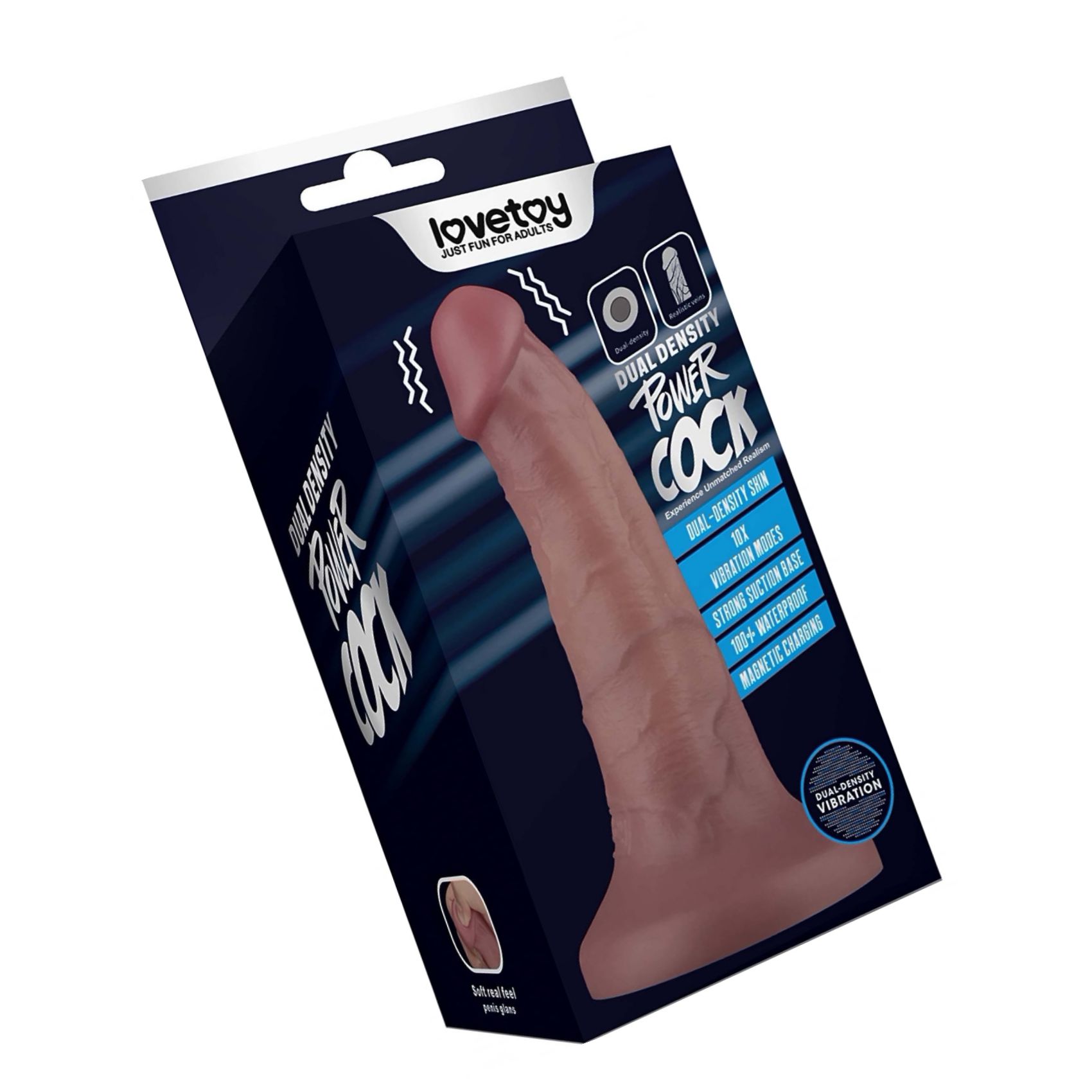 Lovetoy Dual-density Power: dildo realist, cu nucleu ferm și înveliș moale, 10 moduri de vibrații, cu acumulator și 100% impermeabil. Pompă puternică pentru hands-free, silențios și ușor de curățat.