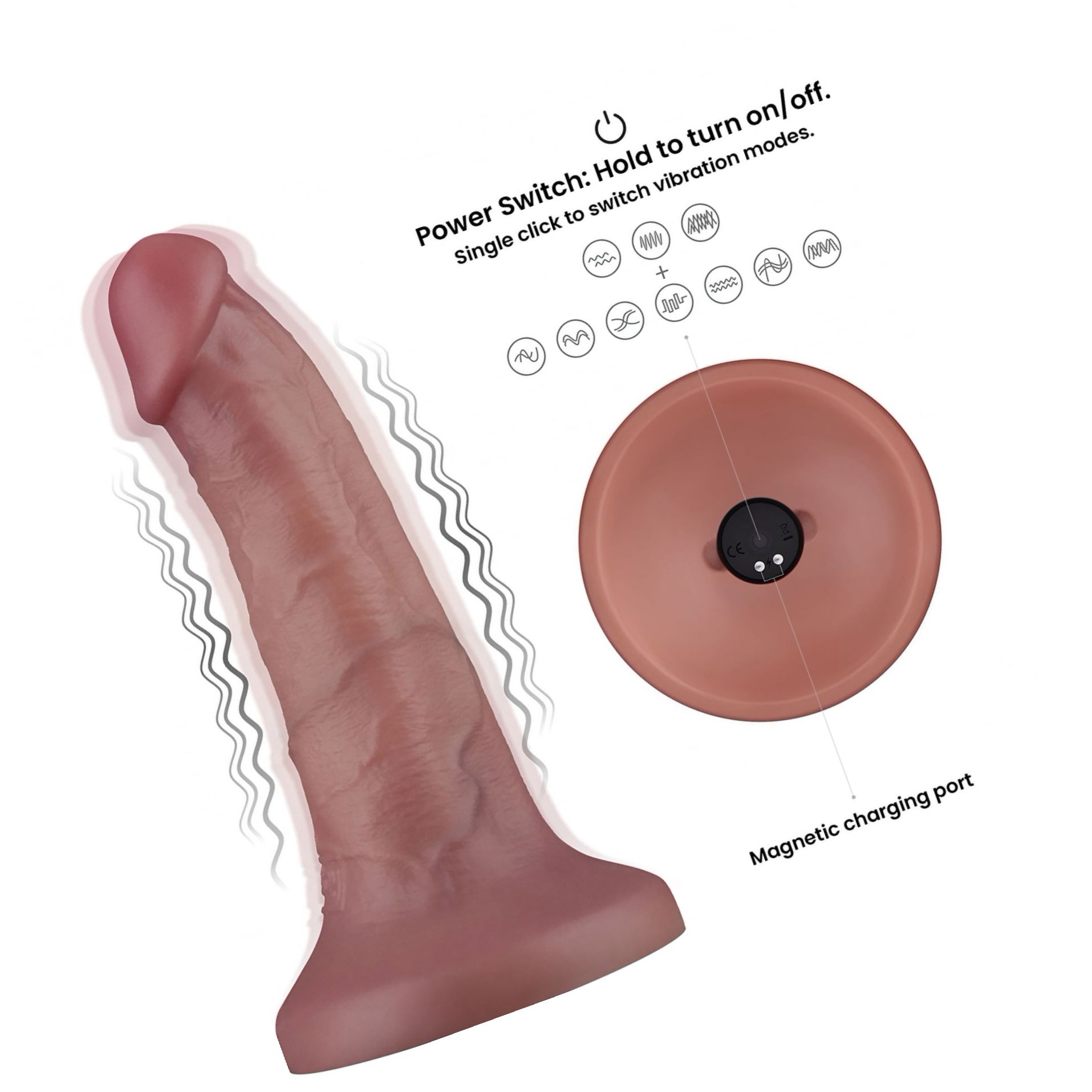 Dispune de 10 moduri de vibrații puternice și funcționare silențioasă, iar bateria reîncărcabilă îngăduie utilizare excluzând cabluri. Fiind 100% impermeabil, poate fi folosit în cadă sau la duș. Baza cu ventuză intensă asigură stabilizare sigură pentru hands-free sau pentru montare cu ham.