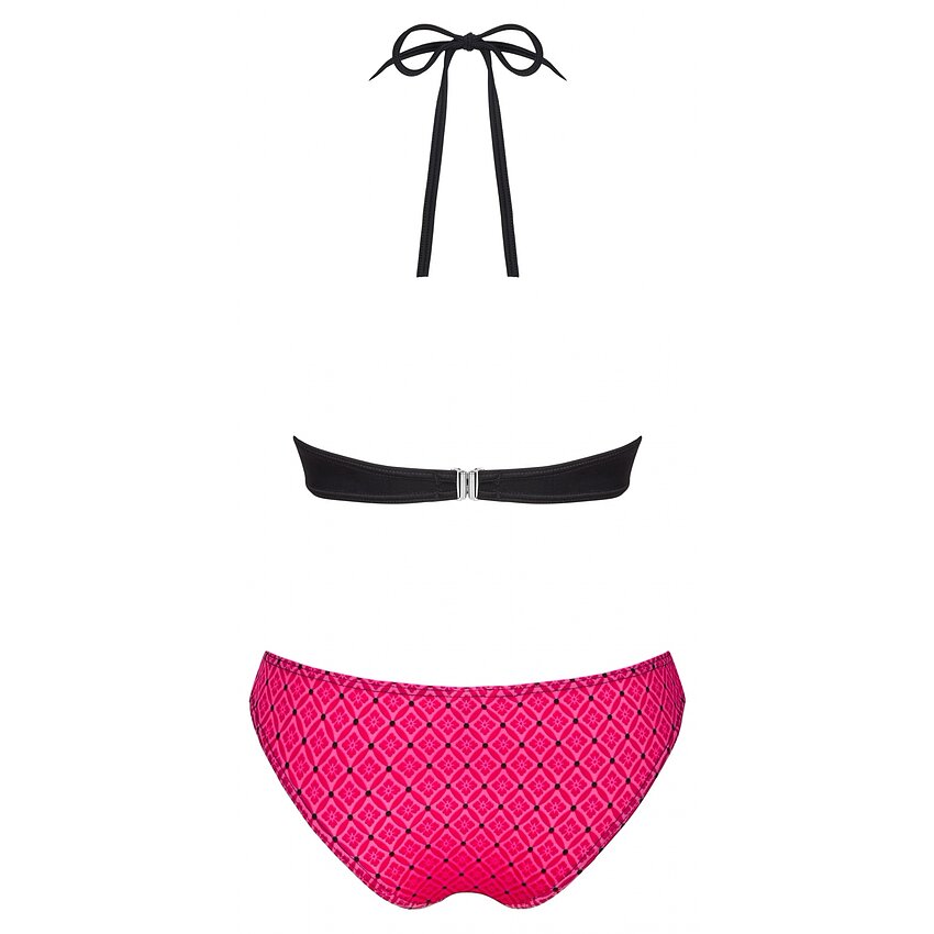 Set format din 2 piese, sutienul cu burete se închide cu clips, slip aferent culoare: negru și roz.
