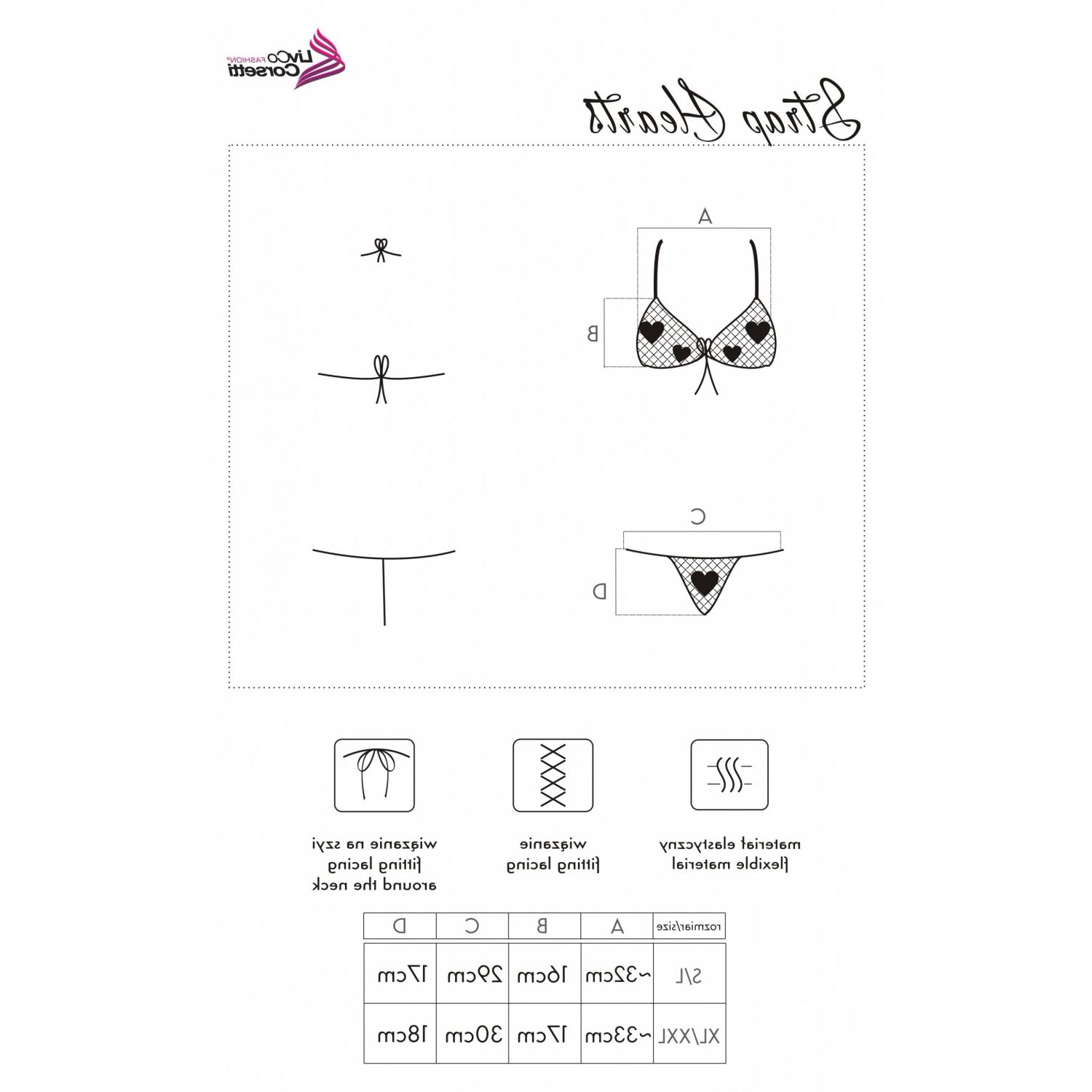 - Bikini-ul are o bandă elastică confortabilă în talie. - În spate, în zona de sus a feselor, chilotul are o mică deschidere brodată cu un fundiță metalică împodobită cu pietricele albe. - Dantelă este jelly și elastică, lucrată cu atenție. - Panty-ul are un pretext floral subtil pe dantelă. - Cusătura din spate accentuează tentant formele feselor.