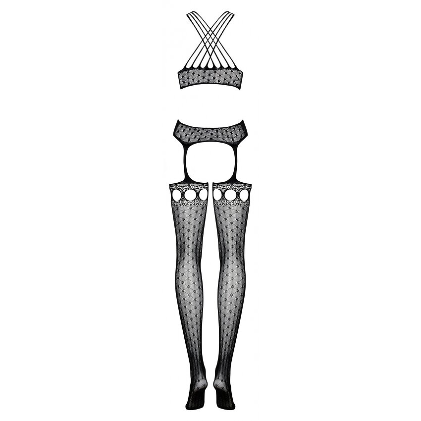 Bodystocking sexual format din top legat de dresuri prin benzi elastice, realizat din țesătură și ochiuri de rețea mici și mari cu tip floral. Model decupat în zona intimă. Mijlocul este înfrumusețat cu o fundiță cochetă. - Bodystocking-ul este conceput pentru a fi incredibil de sexy și atrăgător, făcându-l grozav pentru momente intense în cuplu. - Designul său fermecător și magic poate realizează cele mai mari vise ale utilizatorului. - Are un urmare optic de subțiere din pricina designului său în formă de clepsidră. - Este extrem comod de purtat, mulându-se desăvârșit pe forma corpului. - Bodystocking-ul este perfect adaptat pentru a pune în evidență formele tale sexy și pentru a ascunde posibile dezavantaje ale siluetei.