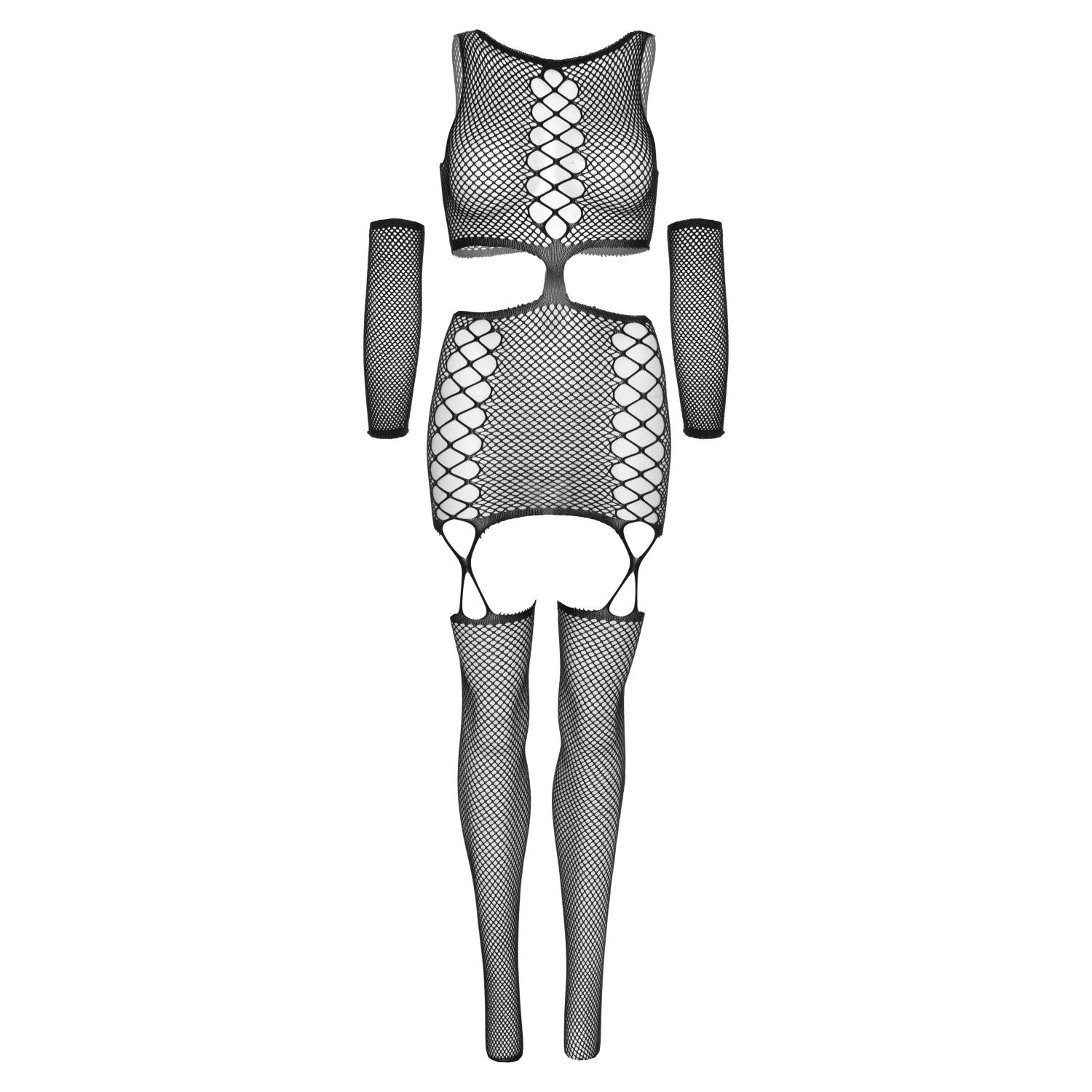 Catsuit Obsessive G310 Negru - îmbracă-te în acest bodystocking fierbinte, decorat cu decupaje rotunde și top neted cu bretele subțiri. Combinând topul și ciorapii, acesta oferă un look seducător. Conceput dintr-un material elastic și comod (90% nylon, 10% elastan). Sedu-ți partenerul. Acționează acum!