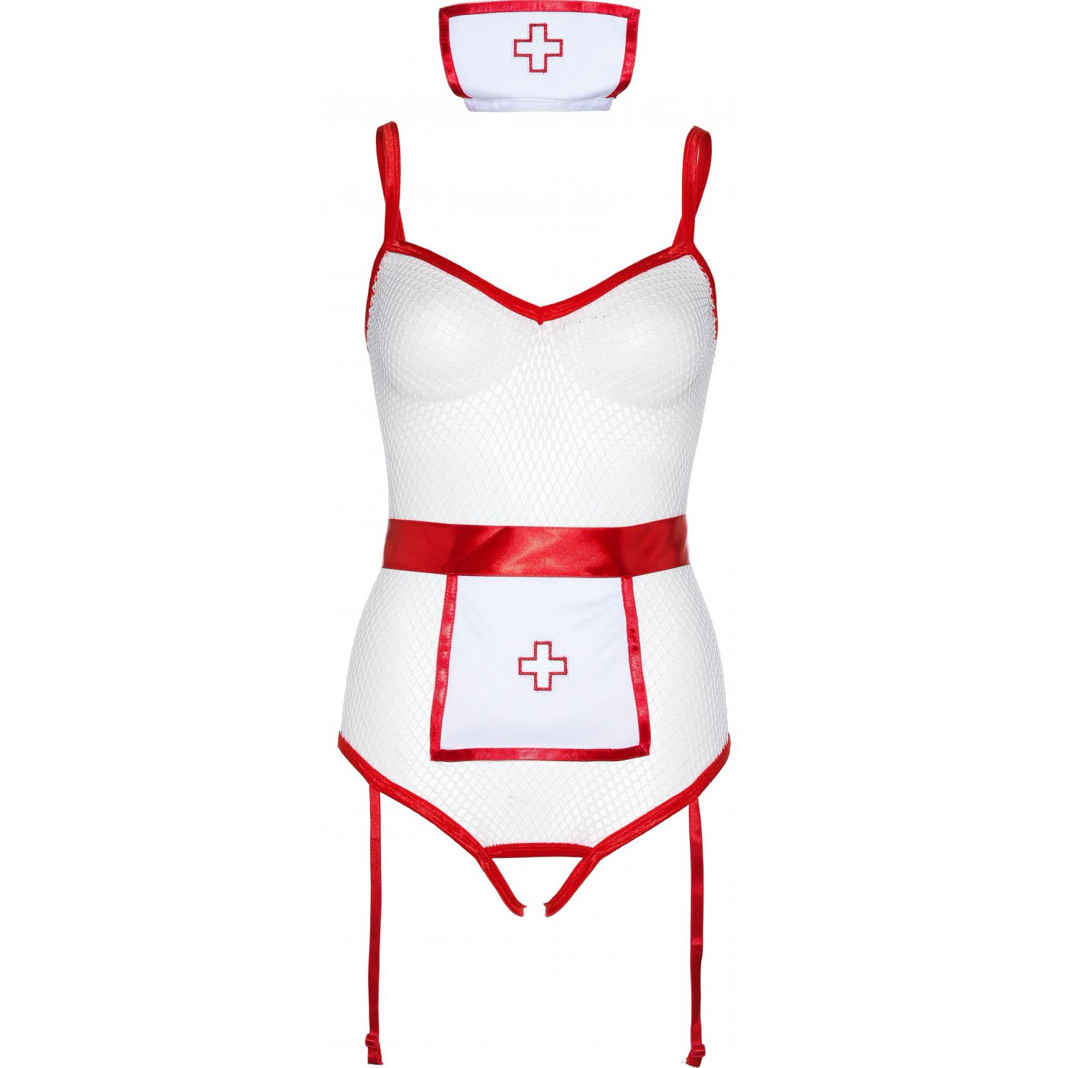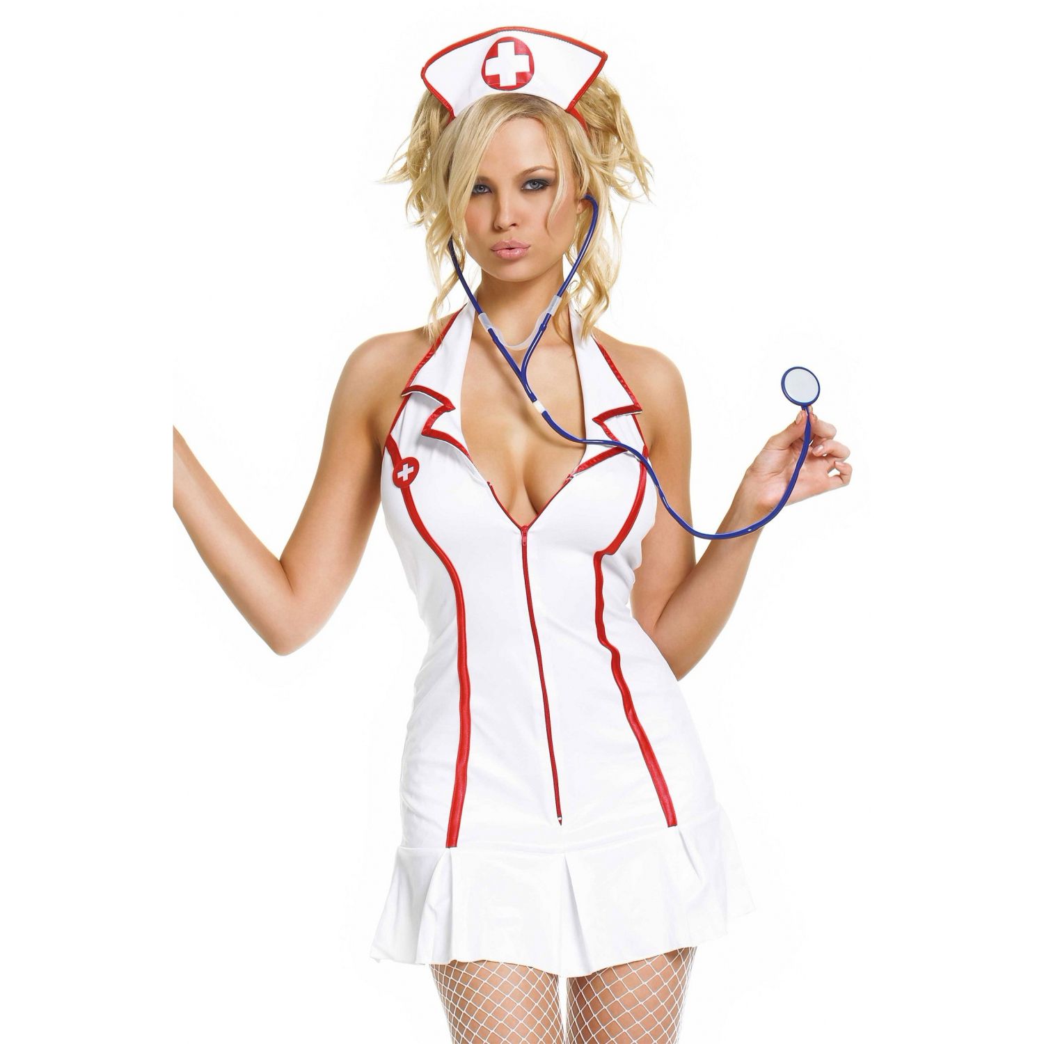 Costum de asistentă wow perfect pentru femeile cu închipuiri care au curajul de a le îndeplini! Setul este compus din rochie scurtă cu fermoar în partea din față, mănuși, bonetă și stetoscop.