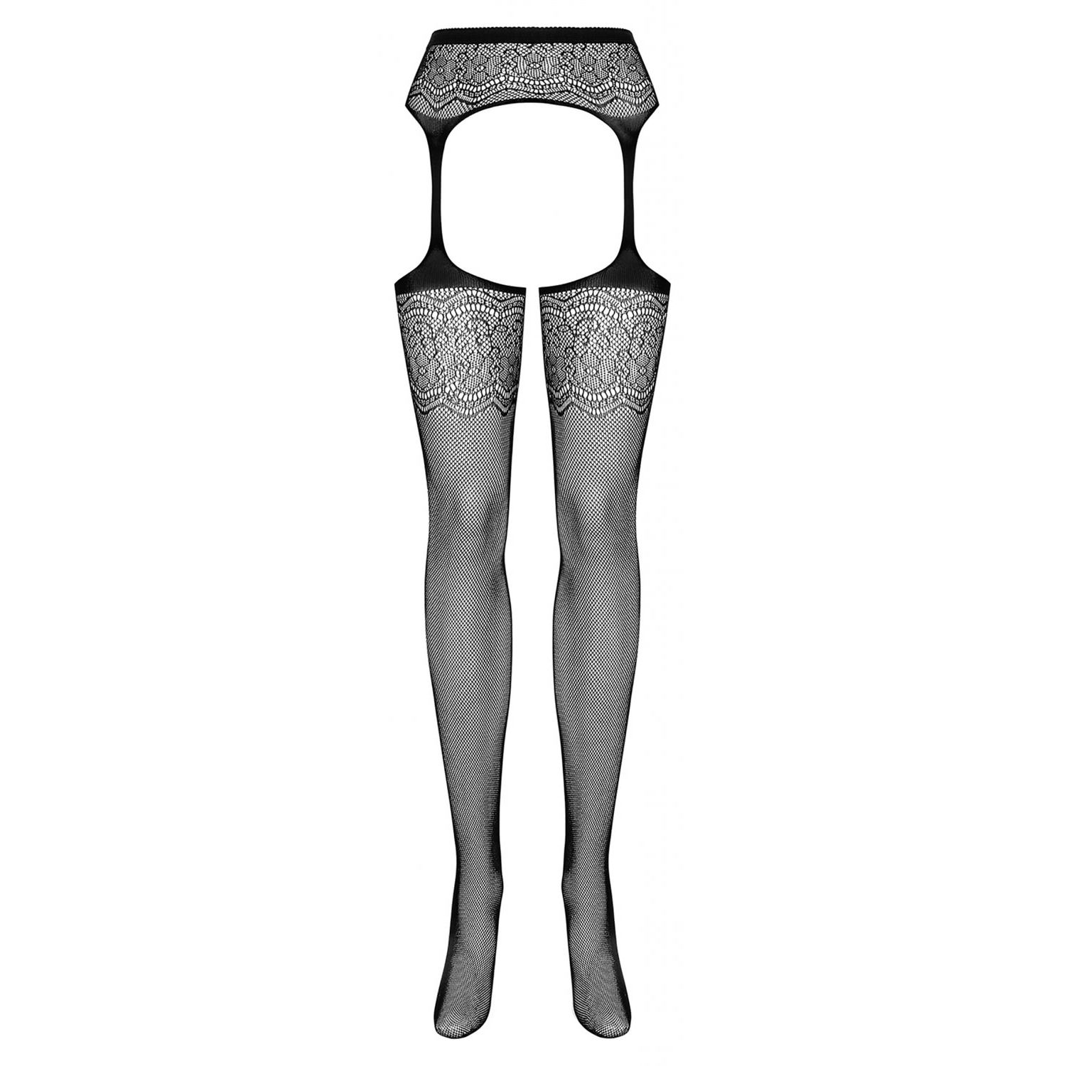 Body Stocking Obsessive F221 Negru - un voal de plasă cu un model floral uimitor. Materialul jelly atinge delicat dermă și îți oferă senzații incitante.